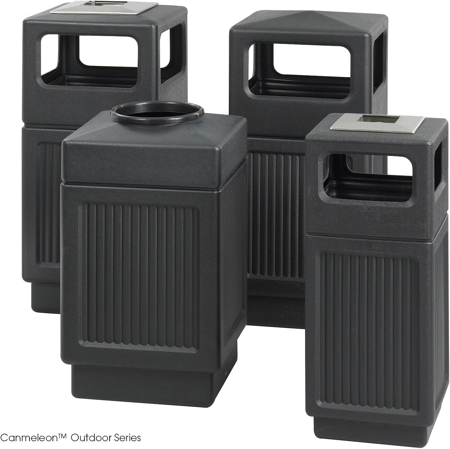 - BLENDS IN NATURALLY. Canmeleon Outdoor and Indoor Recessed Panel Open Top Trash Can blends decorative fluted panels with a molded plastic top to create an attractive value-priced garbage can that enhances outdoor areas while keeping them clean and litter free.