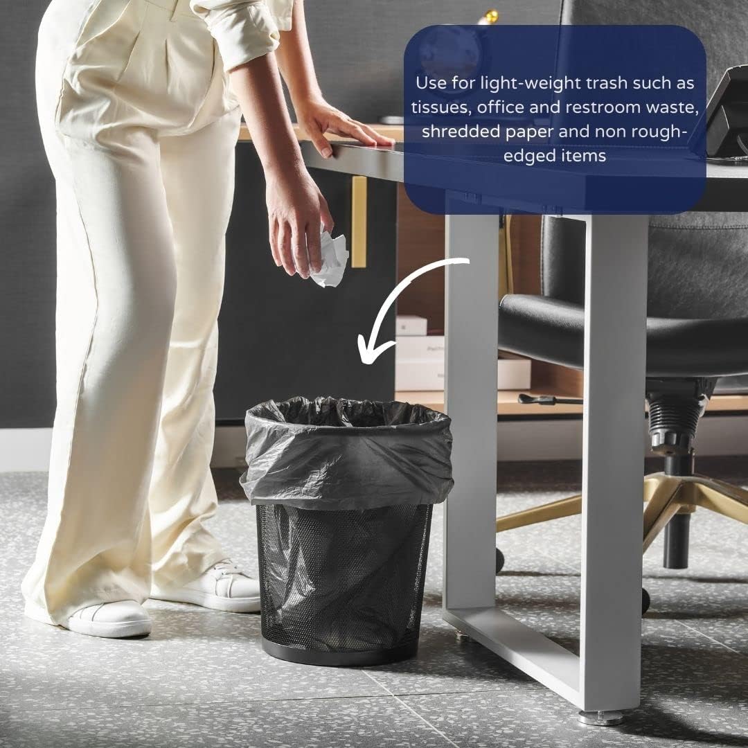 - MULTI USE - Use for light-weight trash such as tissues, office and restroom waste, shredded paper and non rough-edged items. These bags can hold up to 25 pounds worth of paper, tissue, cups, and whatever other trash your office generates.