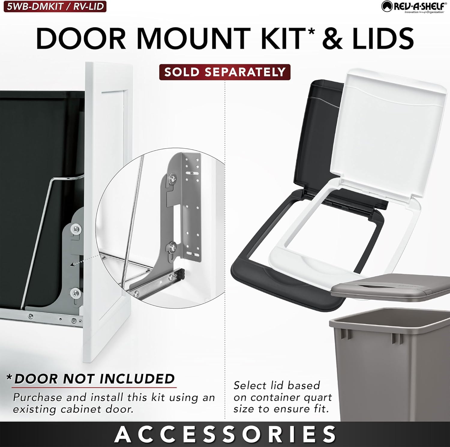 - Easy Install Waste Bin: Installs in just 15 minutes this pullout container comes with everything you need for installation; mounts to cabinet floor; remove handle and mount to the cabinet door with the 5WB-DMKIT (sold separately)