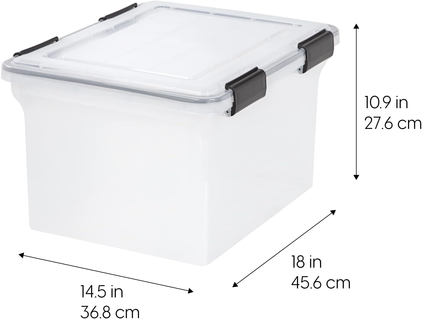 - WEATHERPRO – IRIS USA WeatherPro Heavy Duty Plastic Storage Bin Tote Organizing Container with Durable Lid and Seal and Secure Latching Buckles has high quality heavy duty seals in the lids to preserve and protect valuables and important documents. The heavy duty storage bin creates a vacuum-like environment within the storage container tote blocking out moisture, dust, and insects.