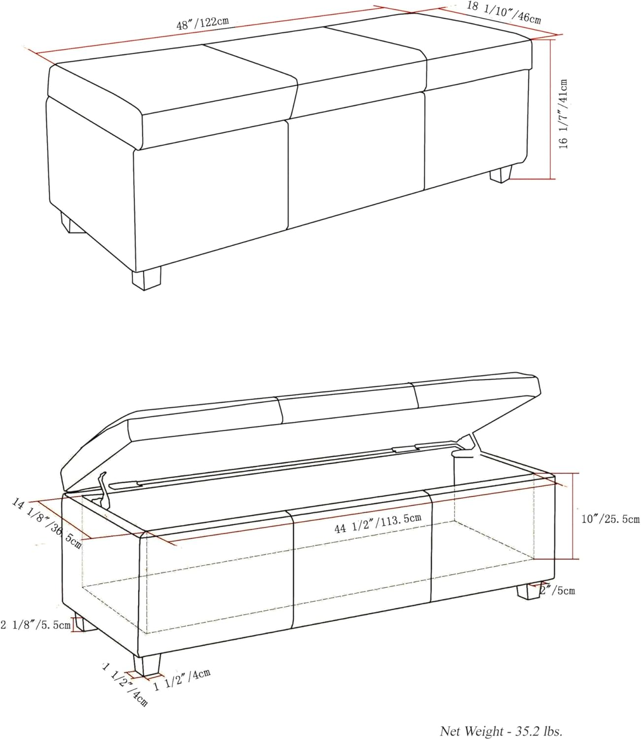 - Product Dimensions : 18.1"D x 48"W x 16.14"H