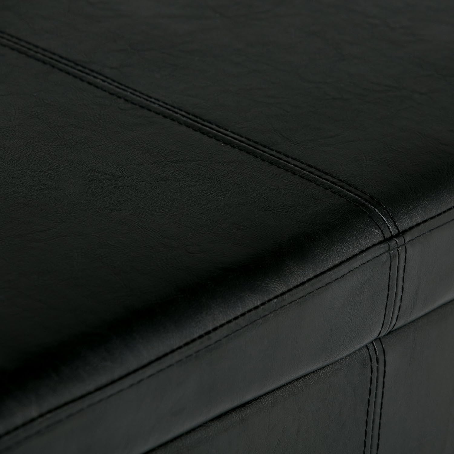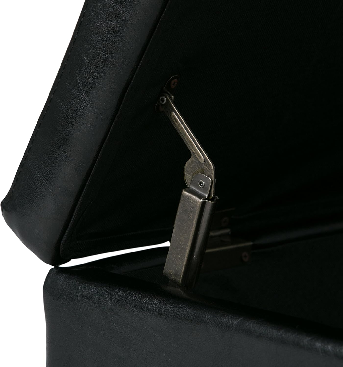 SIMPLIHOME Avalon 48 inch Wide Contemporary Rectangle Storage Ottoman Bench in Midnight Black Vegan Faux Leather, Assembled, for the Living Room, Entryway and Family Room