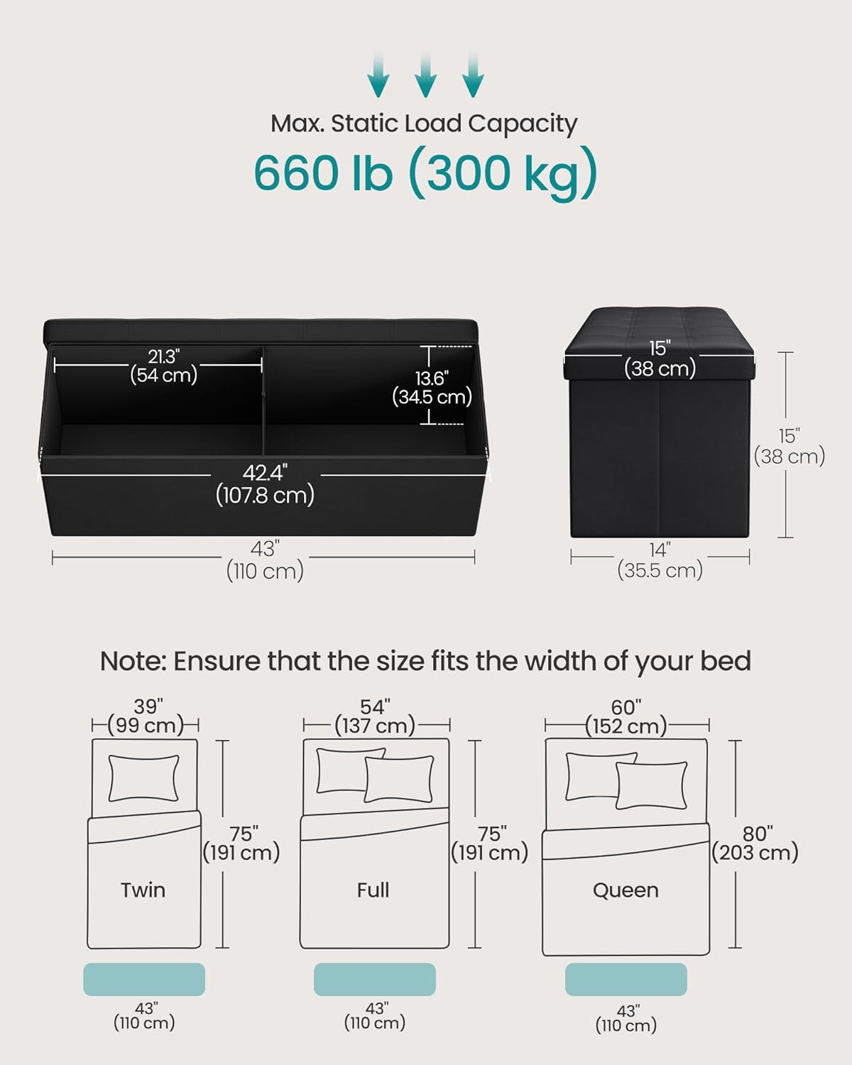 - 【GREAT STRENGTH】Built with thick MDF panels and reinforced with metal corner guards on the lid, this storage chest is strong enough to hold up to 660 lb (300 kg), so you can sit on it with your mind at ease