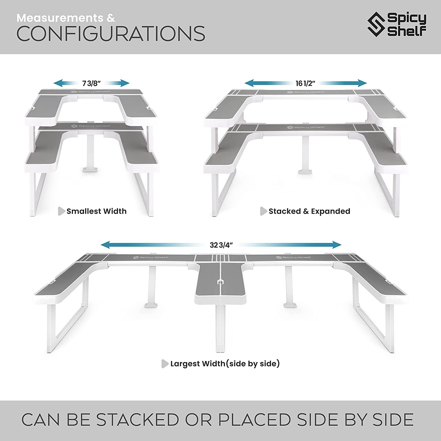 - Organize up to 64 spices - See them all at a glance! Spicy Shelf 3.0 is the ultimate stackable cabinet organizer! It can turn a mess of spices into an organized masterpiece!