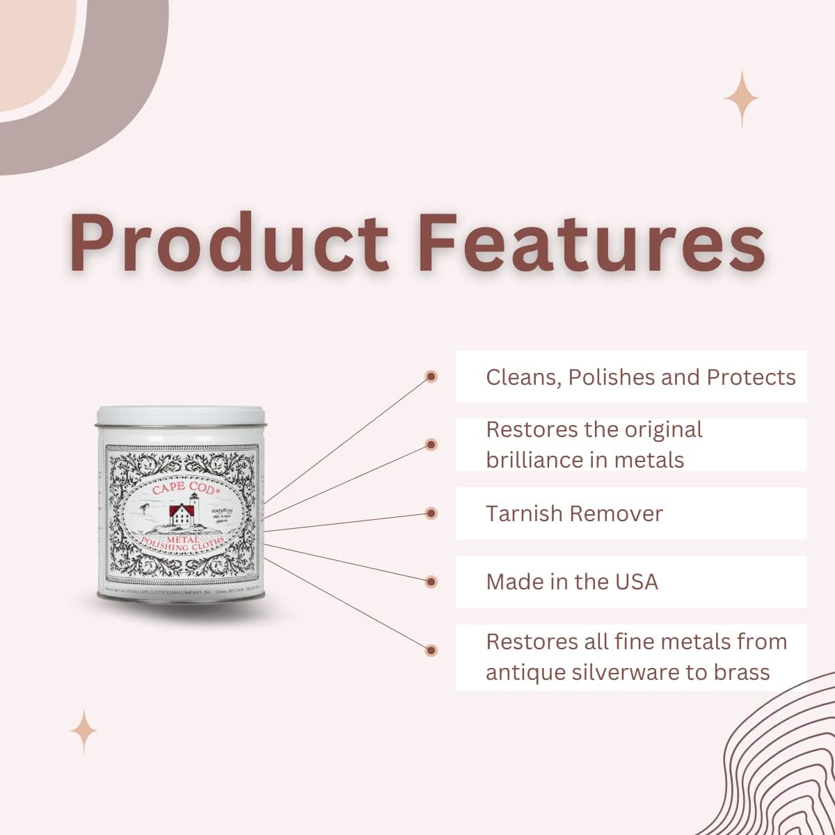 - Tarnish Remover: Our moist polishing cloth removes old tarnish, restores the original brilliance in metals, prevents new tarnish, and gives your valuables a layer of protection with our revolutionary anti-tarnish finish.