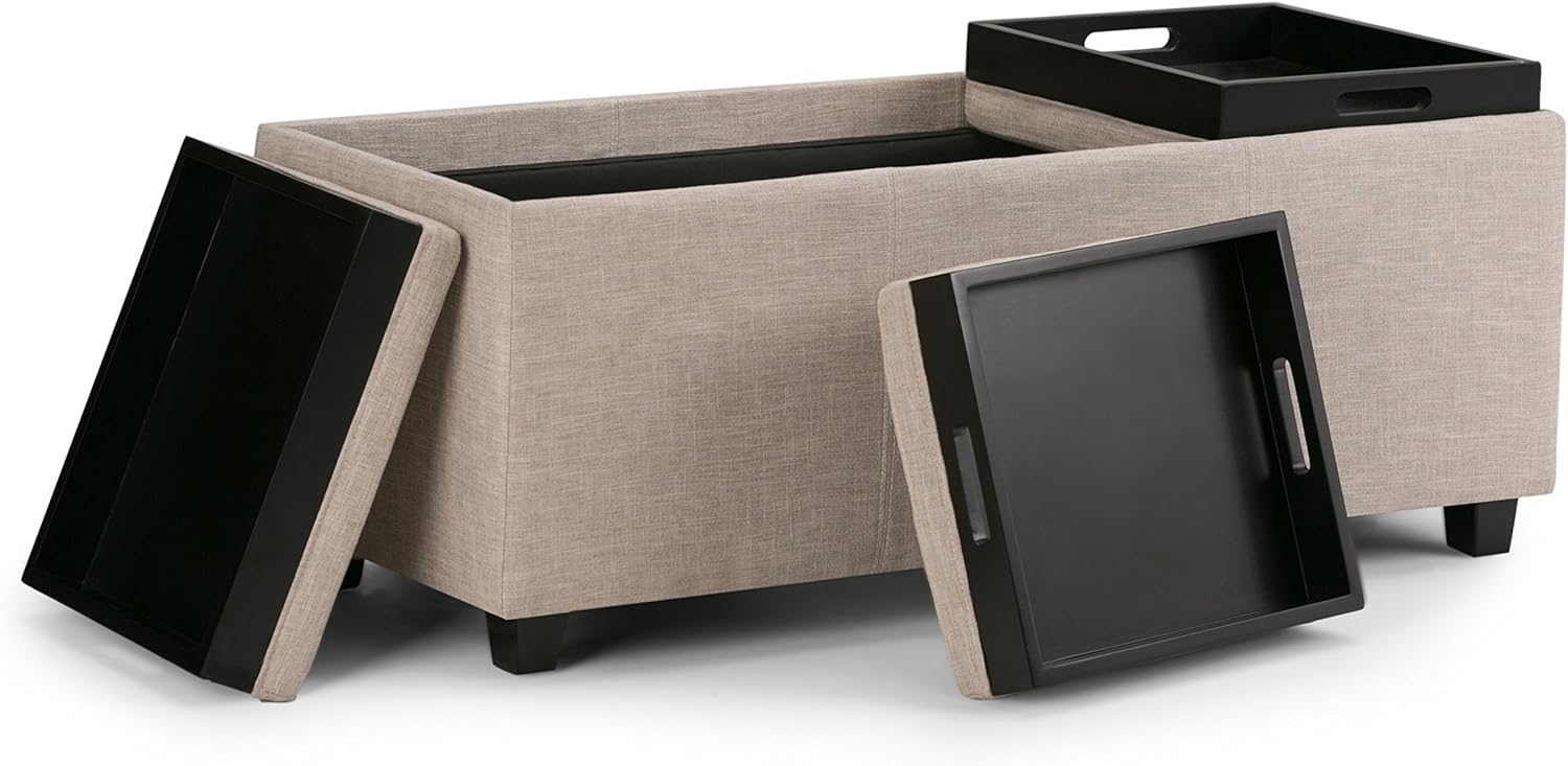 SIMPLIHOME Avalon 42 inch Wide Contemporary Rectangle Storage Ottoman in Natural Linen Look Fabric, Assembled, for the Living Room, Entryway and Family Room
