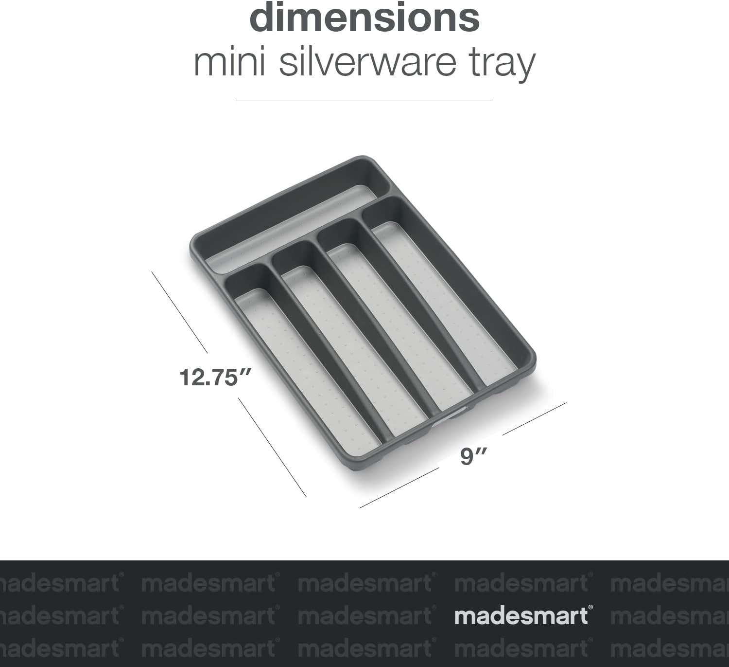 madesmart Classic Mini Silverware Tray, Soft Grip, Non-Slip Kitchen Drawer Organizer, 5 Compartments, Multi-Purpose Home Organization, BPA Free, Granite