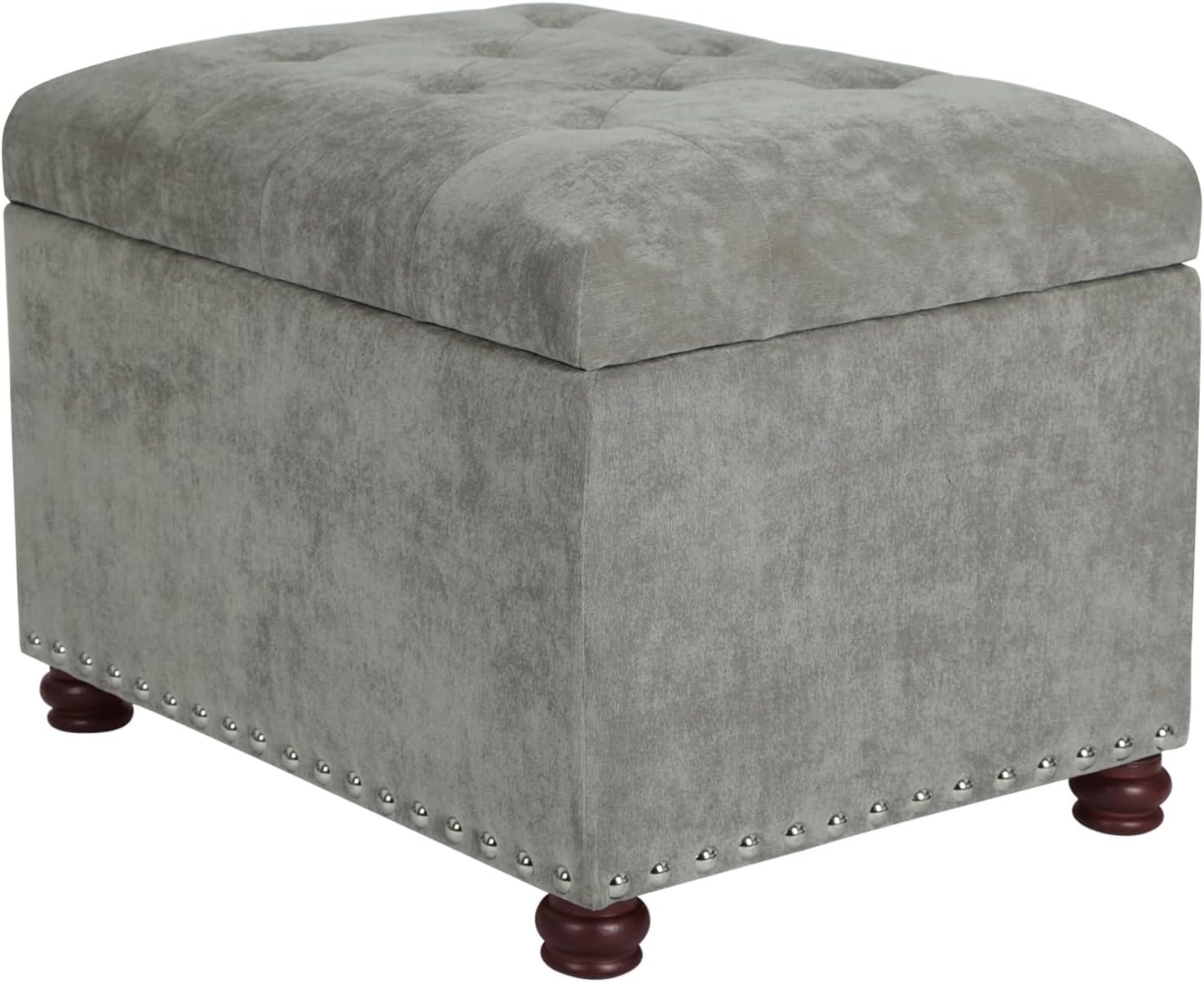 - STYLISH DESIGN CONCEPT: Soft fabric,grey color,upholstered top,wood frame,silver rivet gives this ottoman a rich, luxurious look to any room in the house