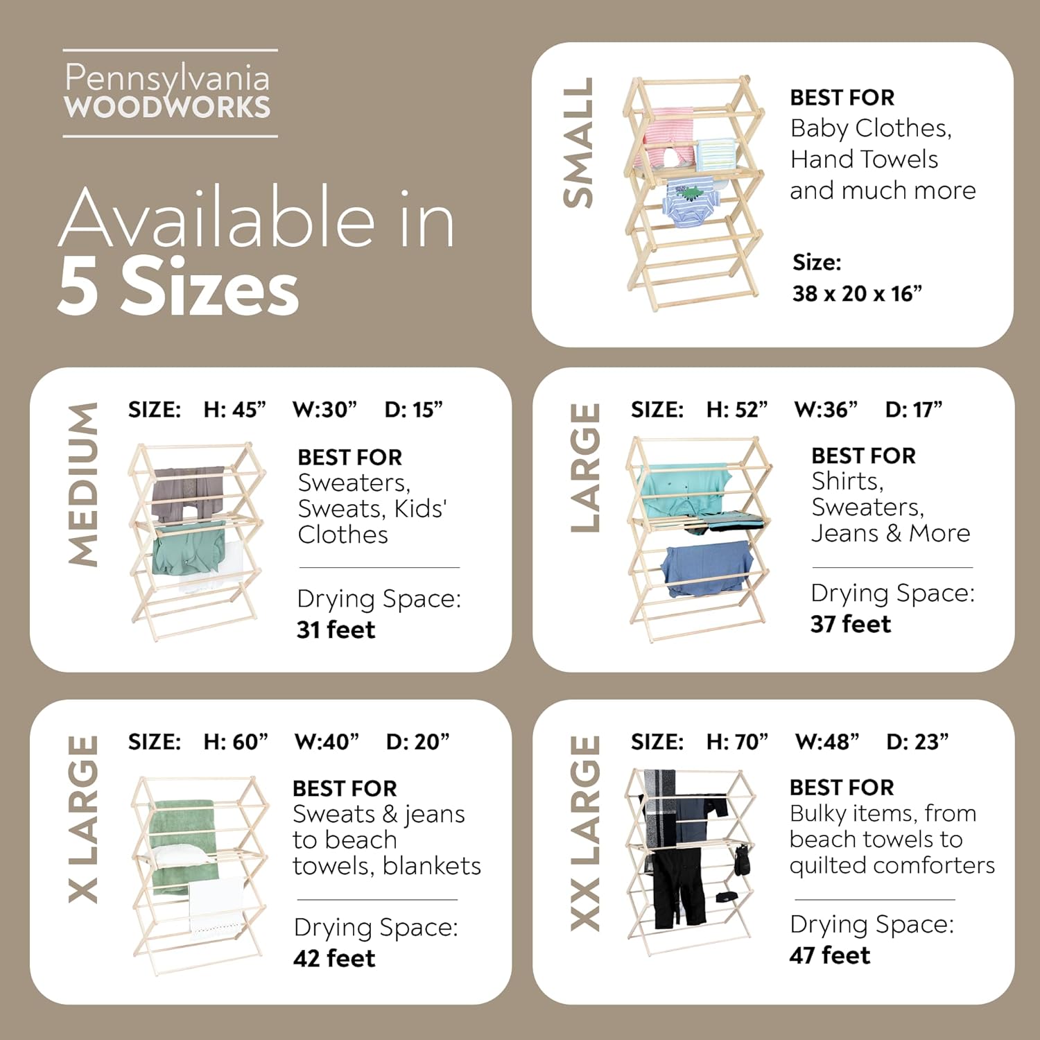 Pennsylvania Woodworks Clothes Drying Rack: Solid Maple Hard Wood Laundry Rack for Sweaters, Blouses, Lingerie & More, Durable Folding Drying Rack, Made in USA, No Assembly Needed, Large