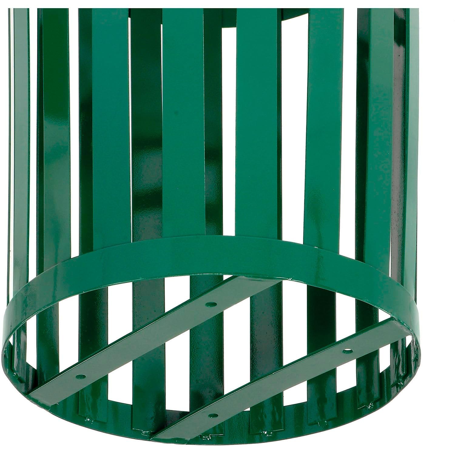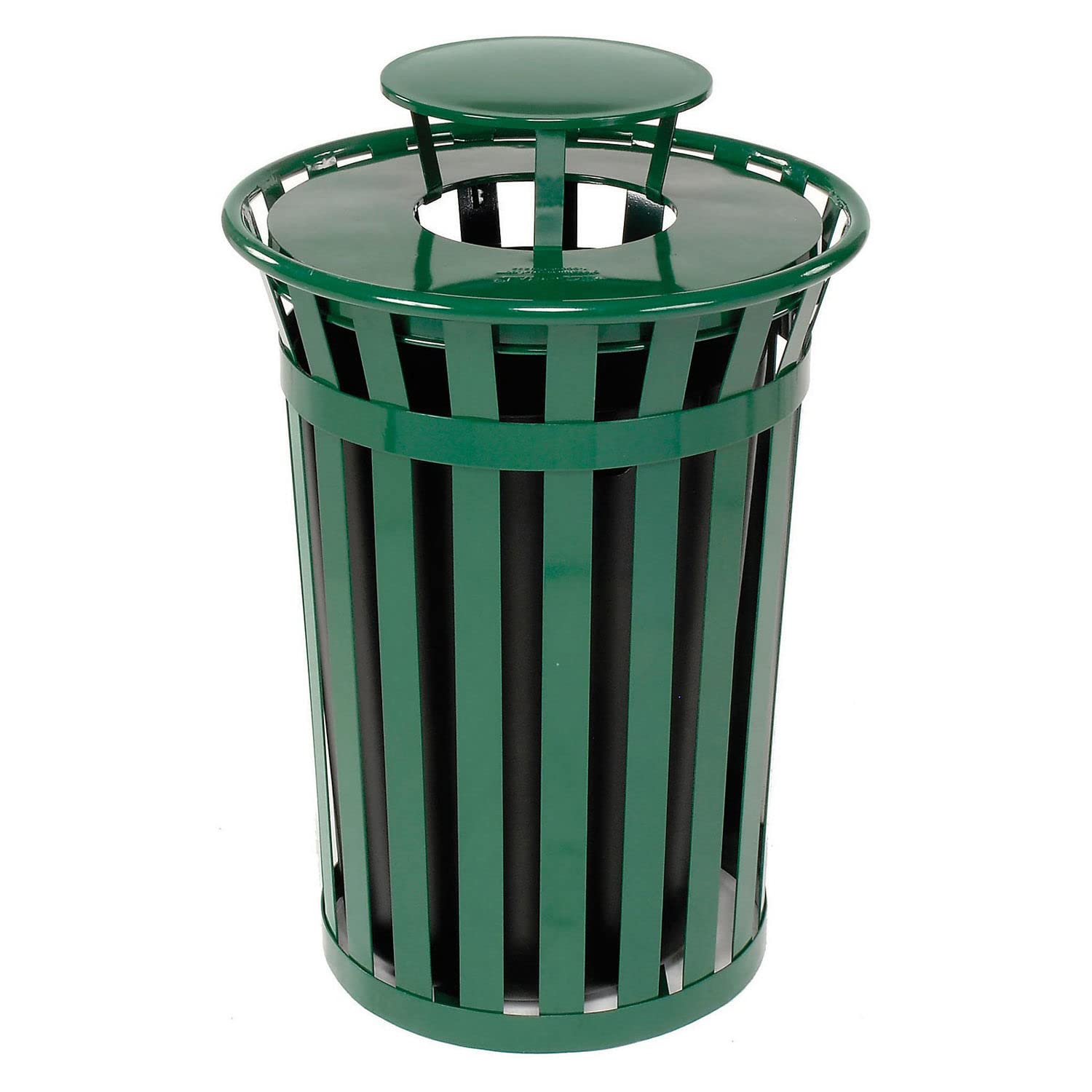Global Industrial Heavy-Duty 36 Gallon Capacity Outdoor Metal Slatted Trash Receptacle with Rain Bonnet Lid & Plastic Liner, Green, Commercial & Industrial Trash Can