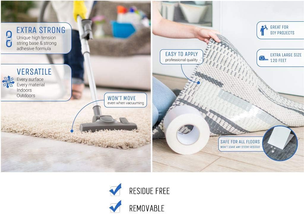 Strongest Double Sided Carpet Tape, 2 Inch by 40 Yard, 120 feet! 2X More! 5 Stars Professional Grade, Industrial Strength, Heavy Duty Rug and Carpet Underlayment Adhesive
