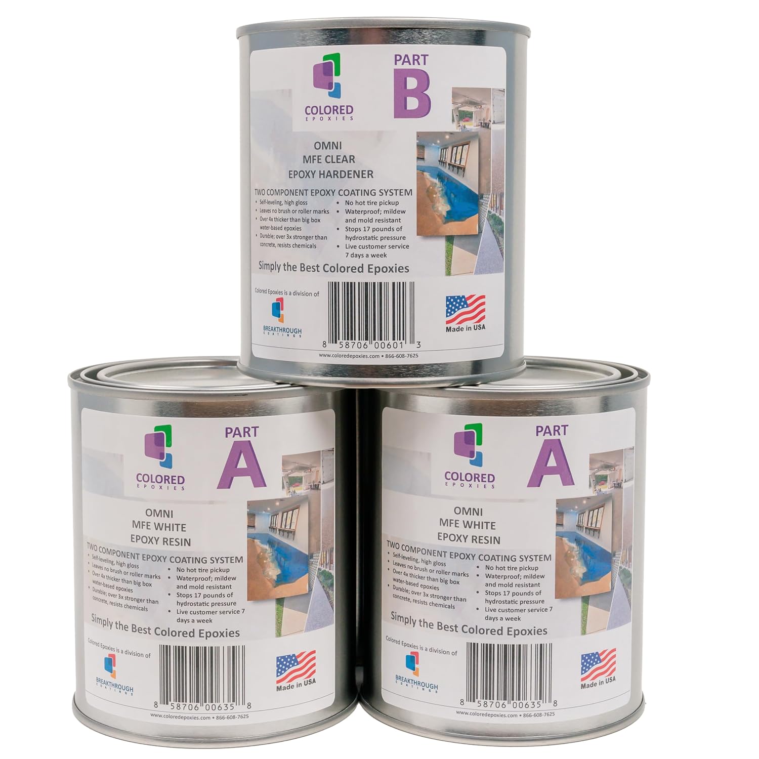Coloredepoxies 10013 White Epoxy Resin Coating Made with Beautiful and Vibrant Pigments, 100% solids, For Garage Floors, Basements, Concrete and Plywood. 3 Quart Kit