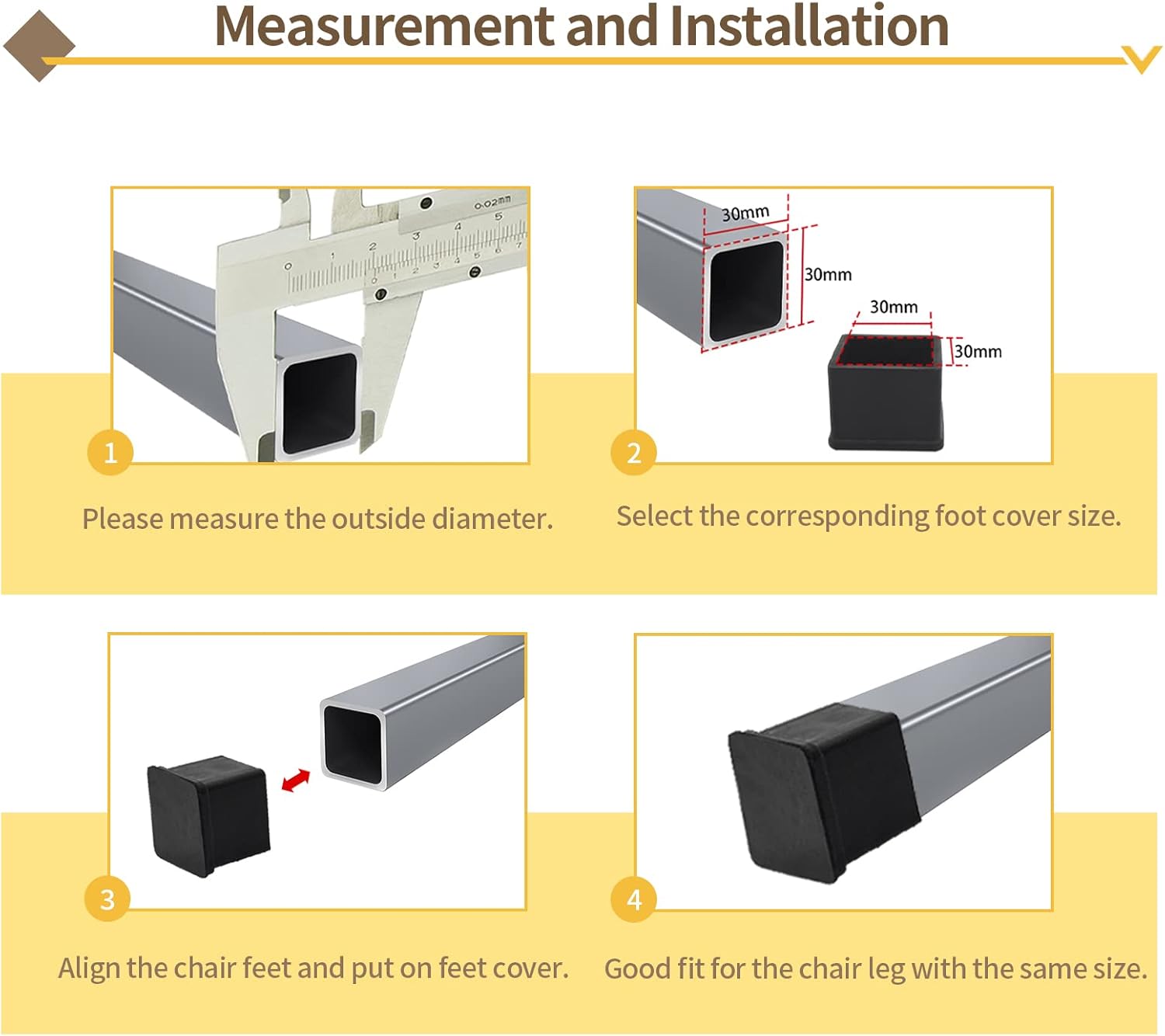 - 【Chair Leg Fitting】: Fit Chair Leg Size : 25 x 25mm / 1" x 1" (L*W)