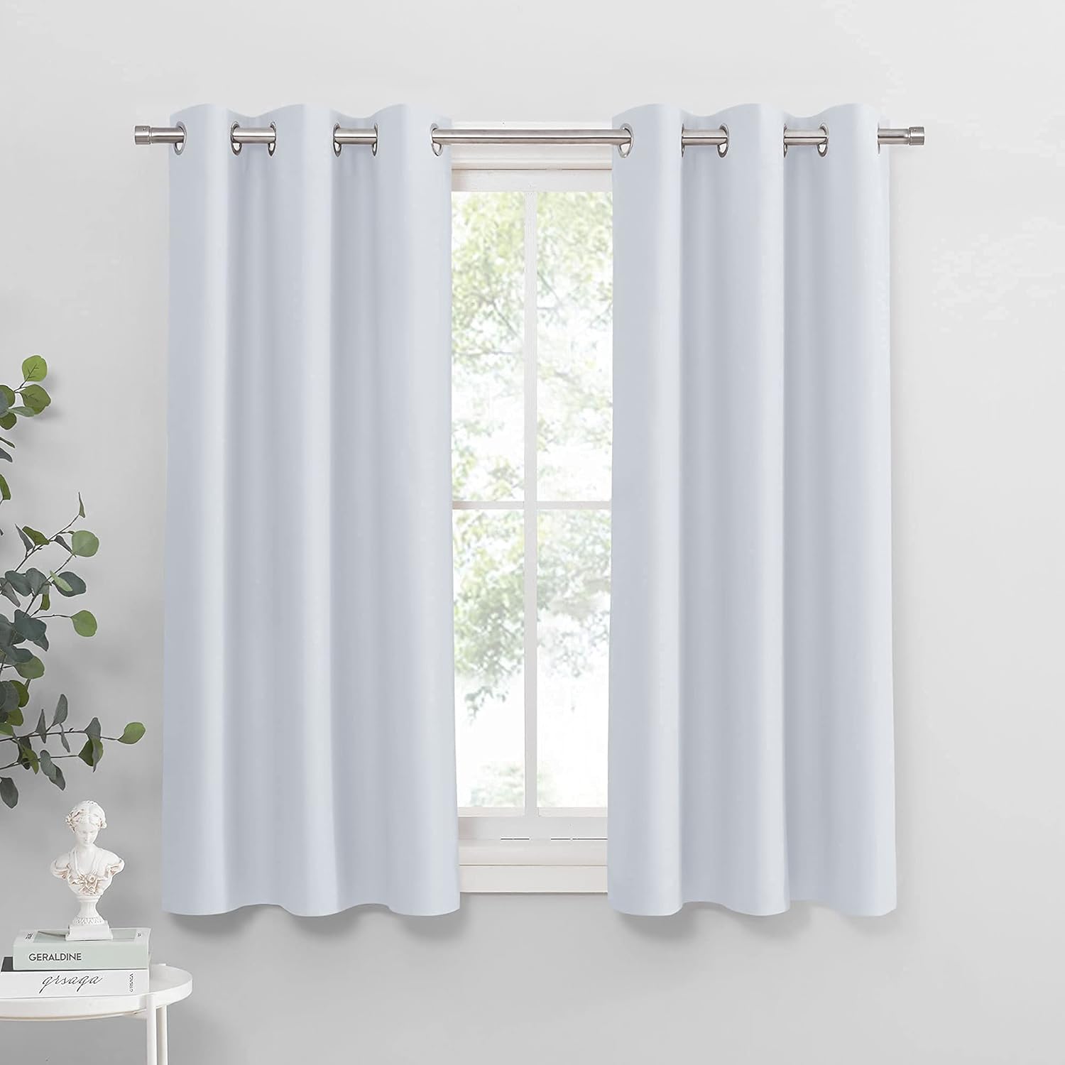 PONY DANCE Room Darkening Curtains - Ring Top Blackout Curtain Panels for Bedroom Window Treatment Drapes Home Decoration Energy Saving for Hotel, 42 x 45 inch, Greyish White, Double Panels