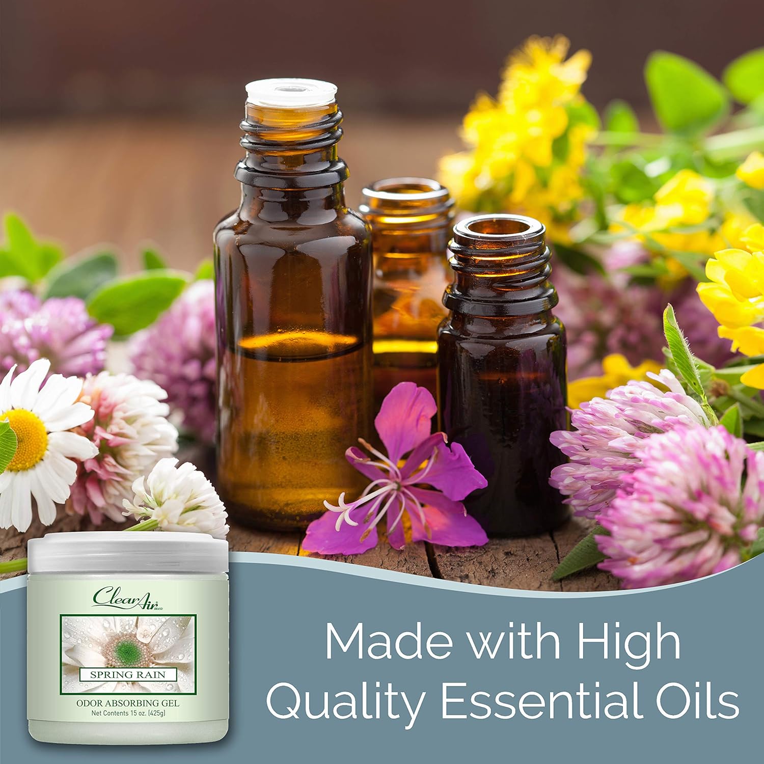 Clear Air Odor Absorber Gel - 15 oz, Pack of 2 - Air Freshener Absorbs and Eliminates Odors in Bathrooms, Cars, Boats, RVs and Pet Areas - Made with Essential Oils - Spring Rain Scent