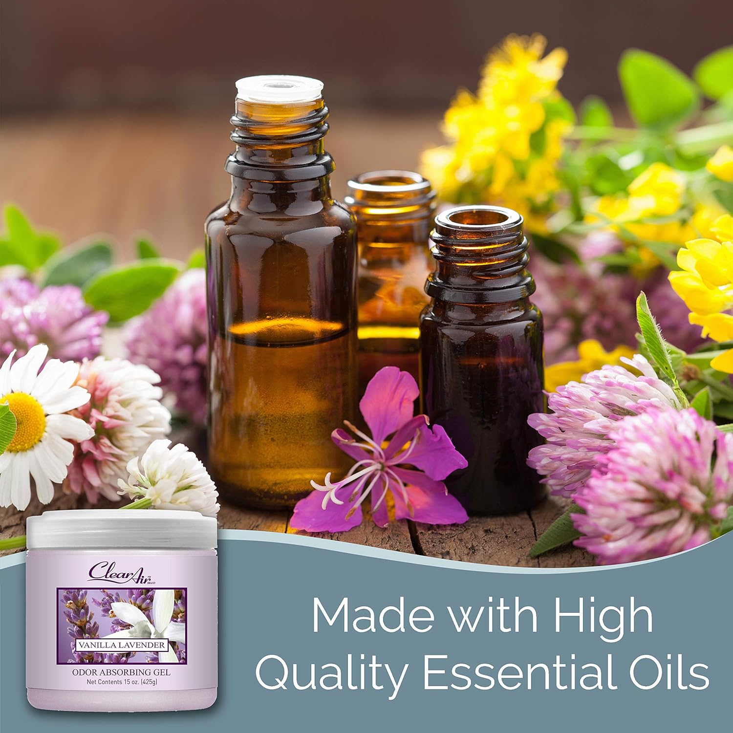 Clear Air Odor Absorber Gel - 15 oz, Pack of 2 - Air Freshener Absorbs and Eliminates Odors in Bathrooms, Cars, Boats, RVs and Pet Areas - Made with Essential Oils - Lavender Vanilla Scent