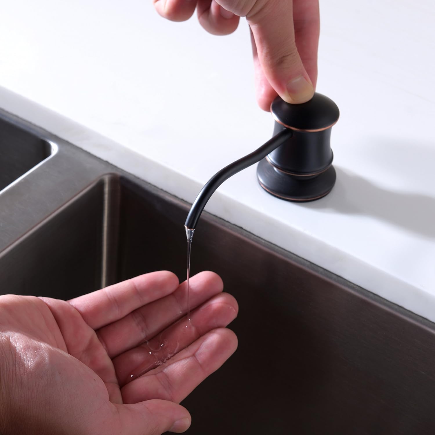 Delle Rosa Soap Dispenser, Liquid Soap Dispensers for Kitchen Sink, Brass Head Kitchen Sink Soap Dispenser Soap or Lotion Pump Dispenser Oil Rubbed Bronze, 11oz/320ml
