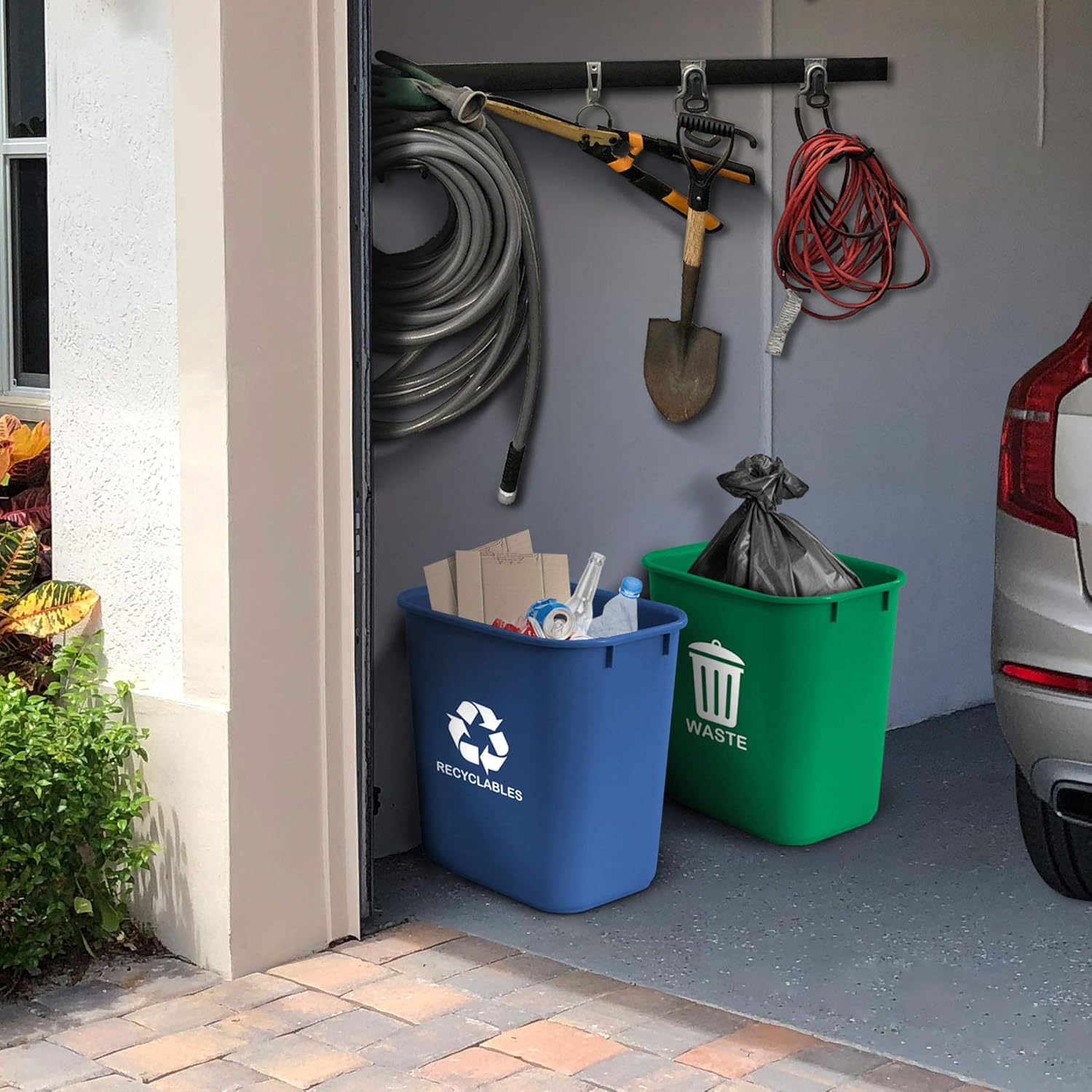 Acrimet Wastebasket Bin for Recycling and Waste, 6.75 Gallon/ 27 Quart/ 24 Liter (Plastic) (Green and Blue) (Set of 2)