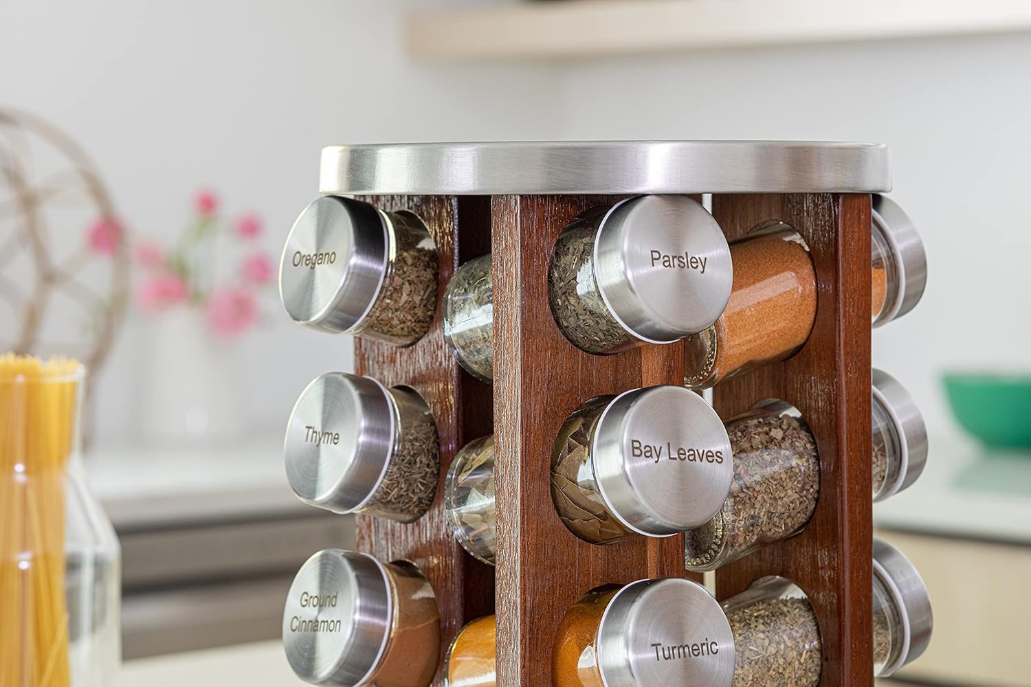 - COMPACT DESIGN: Its compact design and rotating base add practicality to style for the ultimate spice storage solution and makes it easy to find the spice you need.