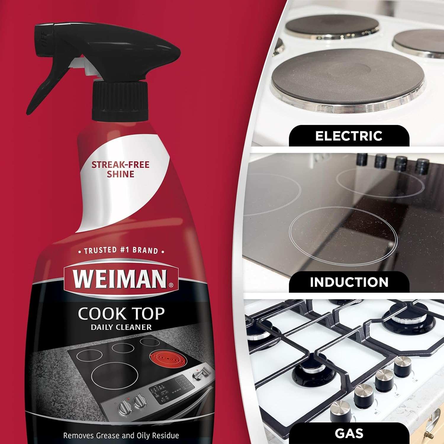 - CLEAN EVERYDAY KITCHEN MESSES: Easily get rid of grease, grime and stubborn burned-on food; Weiman Cook Top Daily Cleaner is a simple solution to protect your stovetop and keep your kitchen sparkling