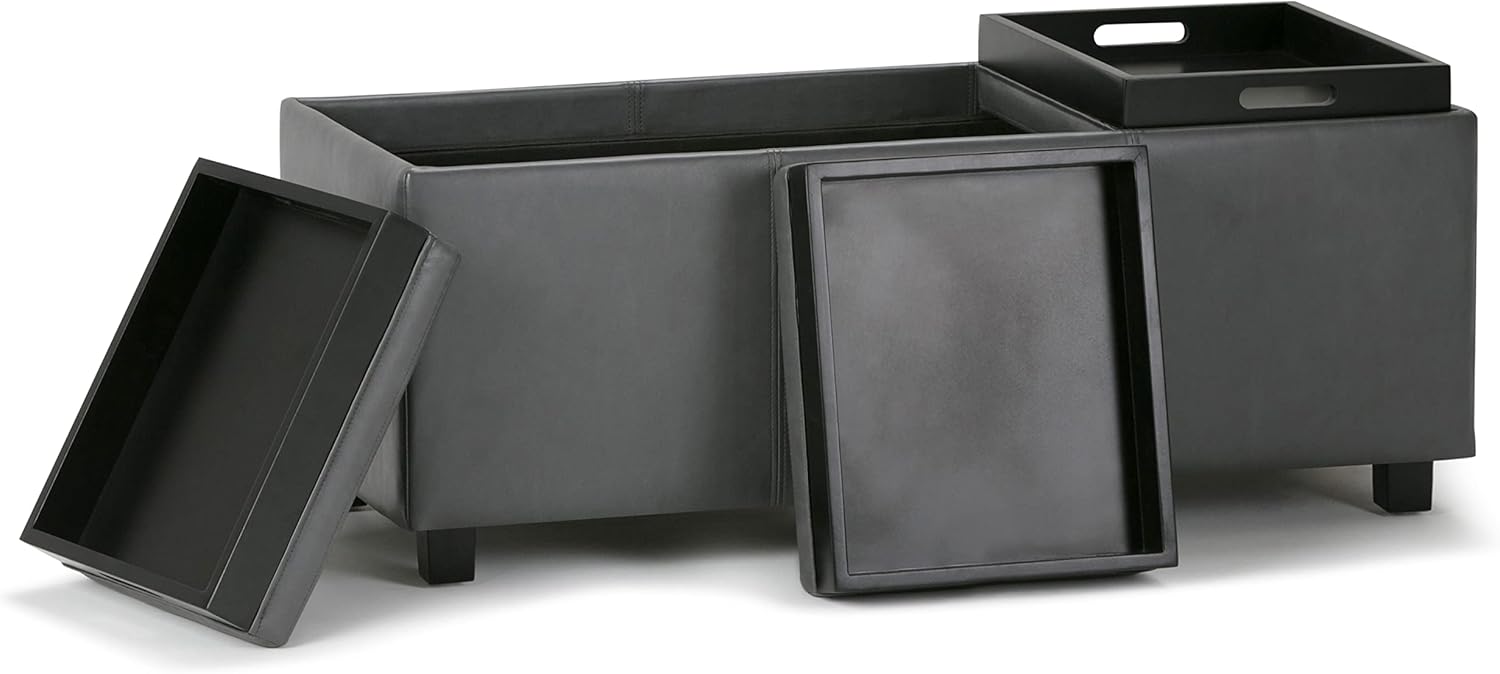 SIMPLIHOME Avalon 42 inch Wide Contemporary Rectangle Storage Ottoman in Stone Grey Vegan Faux Leather, Assembled, For the Living Room, Entryway and Family Room