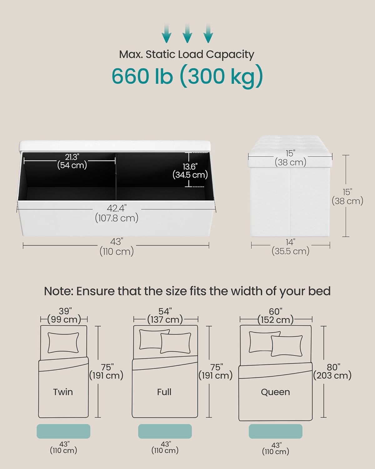 - 【GREAT STRENGTH】Built with thick MDF panels and reinforced with metal corner guards on the lid, this storage chest is strong enough to hold up to 660 lb (300 kg), so you can sit on it with your mind at ease