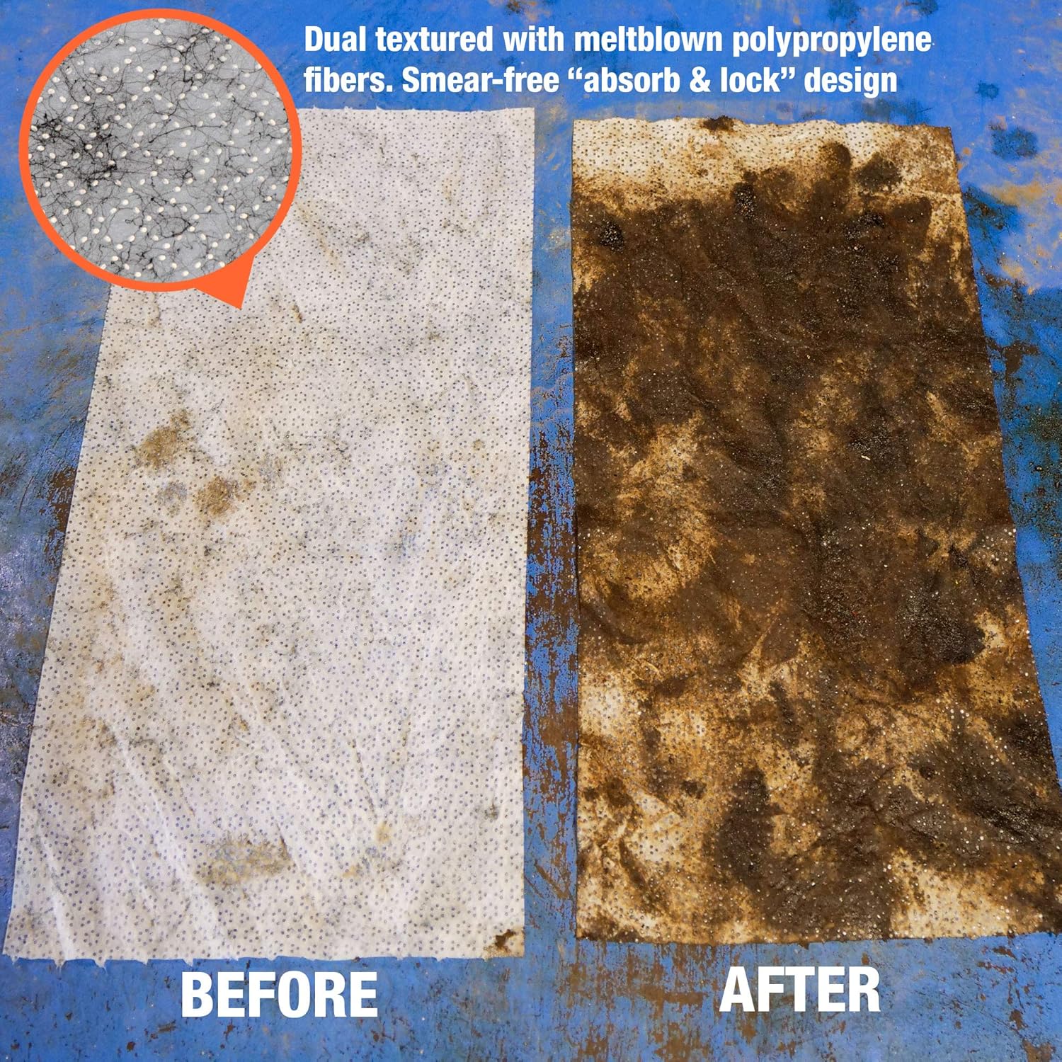 - Dual-textured wipe removes the contaminant into the wipe and away from the surface, reducing smears and speeding clean-up.