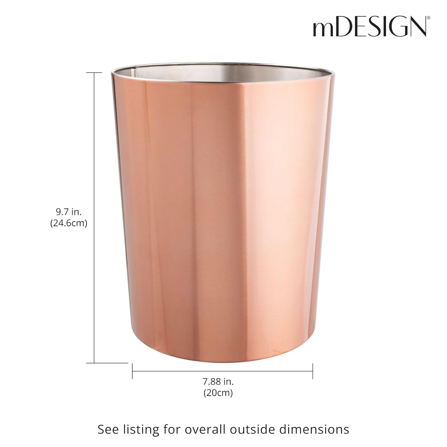 mDesign Round Metal Small 1.7 Gallon Recycle Trash Can Wastebasket, Garbage Container Bin for Bathrooms, Kitchen, Bedroom, Home Office - Durable Stainless Steel - Mirri Collection - Rose Gold