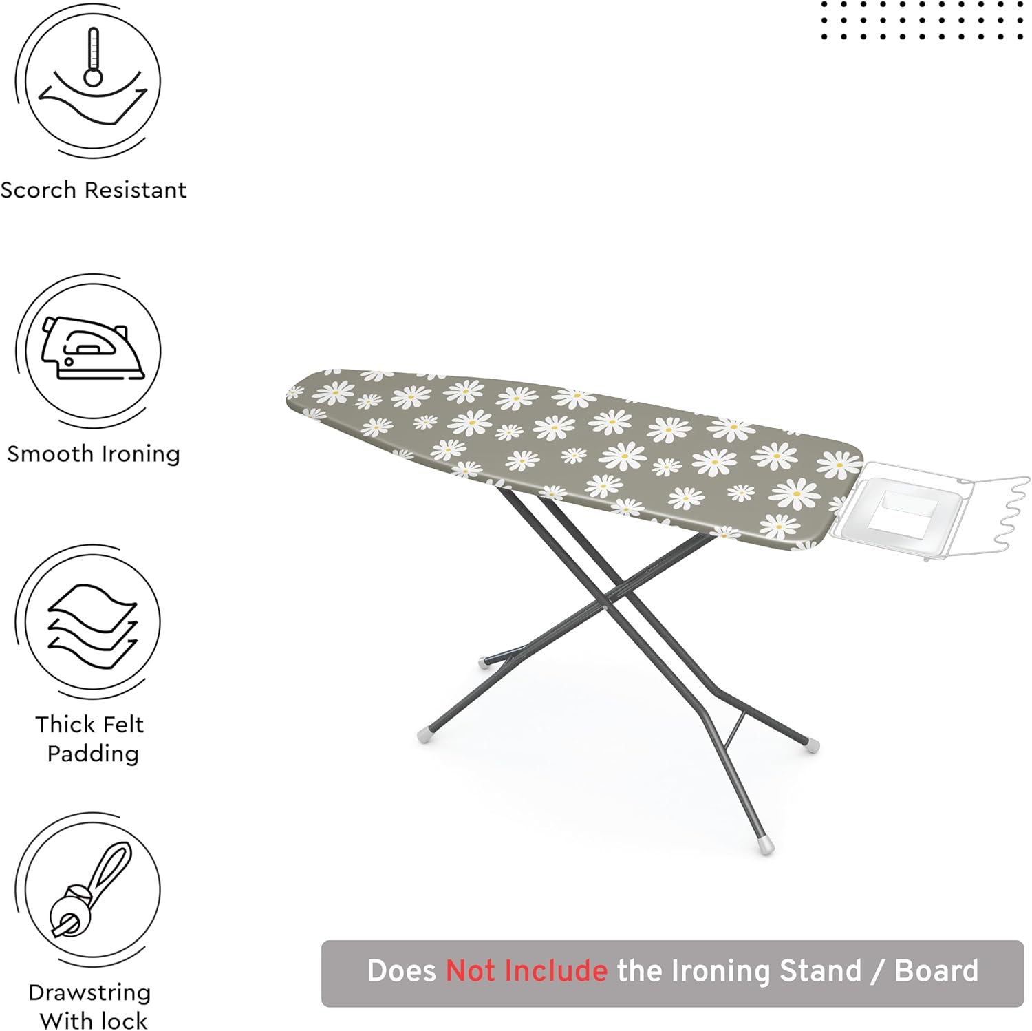 Encasa XO Ironing Board Cover and Pad 49"x18" - Thick 3mm Felt Padding, Drawstring Tightening & Lock, Easy Fit, Scorch & Stain Resistant, Fits Wide Ironing Board - Daisy Grey
