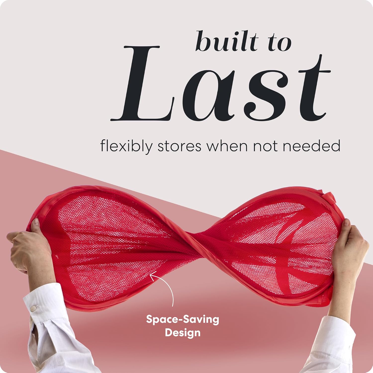 Handy Laundry Collapsible Mesh Pop Up Hamper with Wide Opening and Side Pocket - Breathable, Sturdy, Foldable, and Space-Saving Design for Clothes and Storage (Red | 2-Pack)