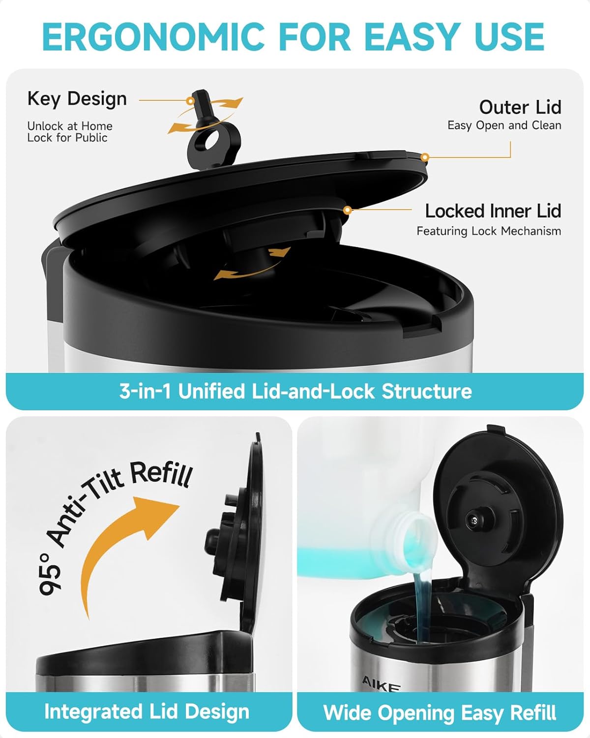 - Hassle-Free: 25oz Large Capacity Stainless Steel for Commercial Use.Touchless for All Family Members at Home