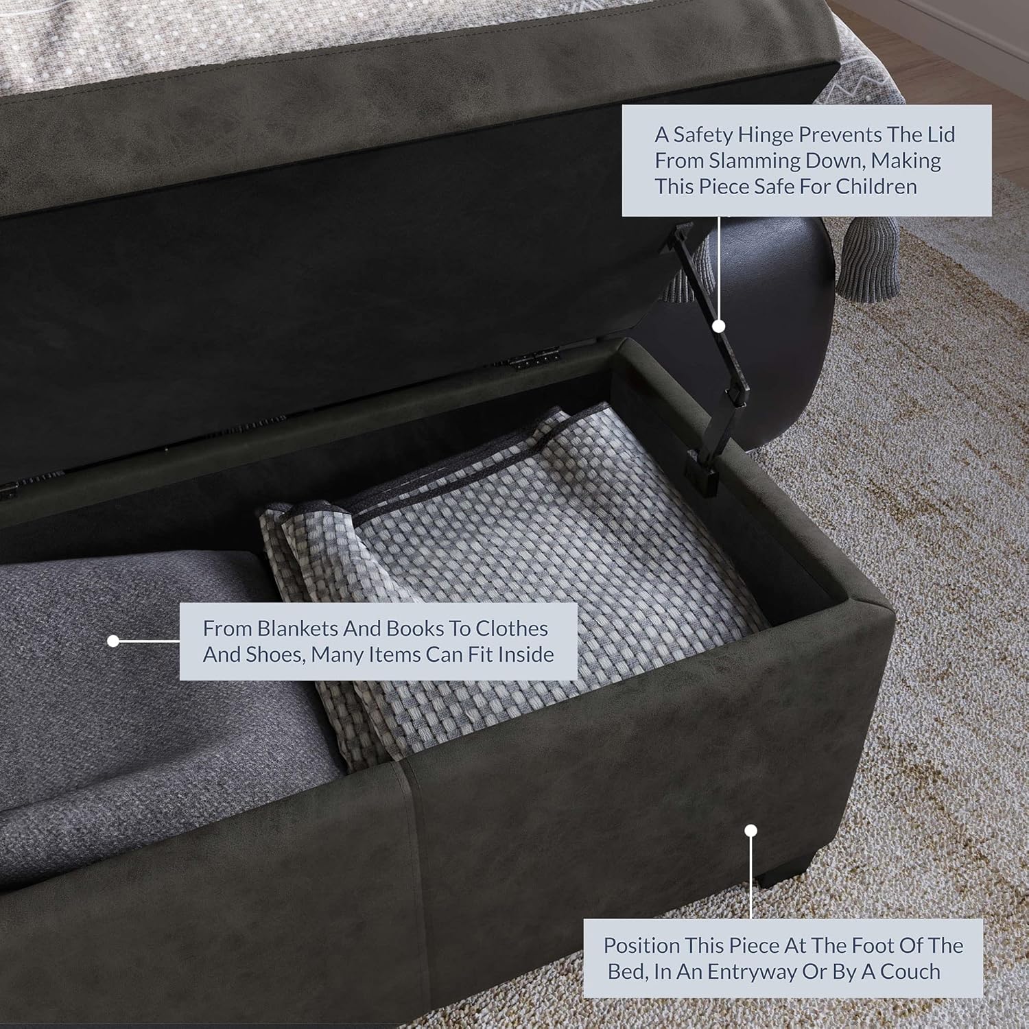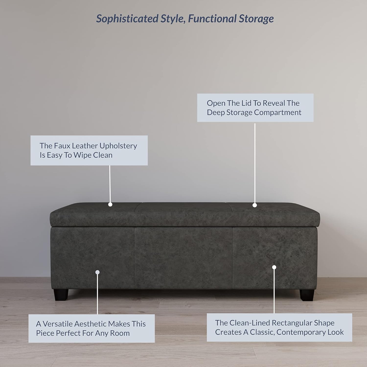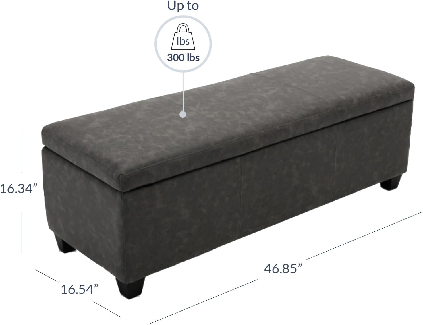 BELLEZE Storage Faux Leather Ottoman, 47 Inch Bench Bedroom Bench with Safety Close Hinge, Extra Long Ottoman with Storage for Living Room, Entryway, Hallway, Foot Rest, Support 300lbs - Rustic Gray