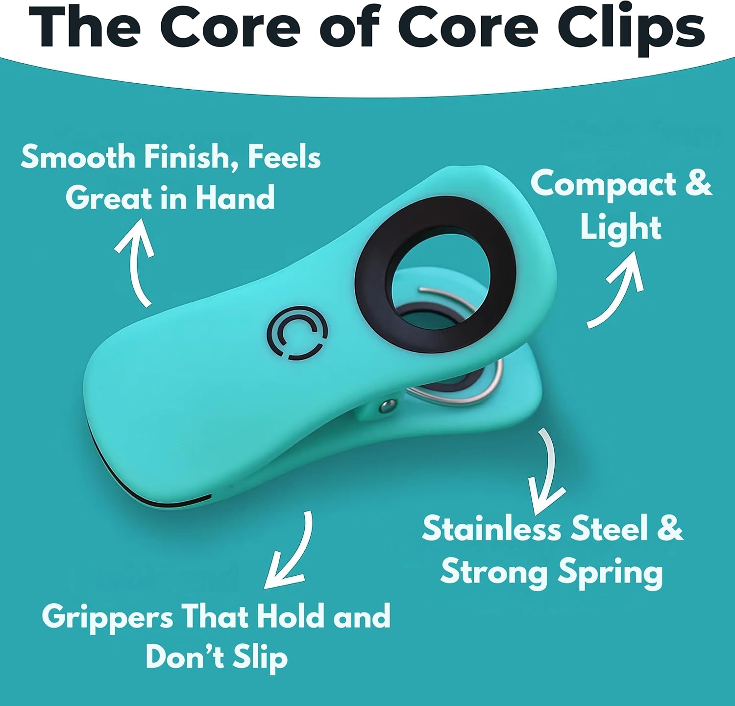 - SMARTER DESIGN, ZERO HASSLE. Forget awkward towel bands that are hard to stretch or a struggle to use. CoreClips provide superior holding power with a simple, effortless pinch mechanism. Their smooth edges won't snag or tear fabric, offering a reliable, stylish, and practical solution for your vacation setup.