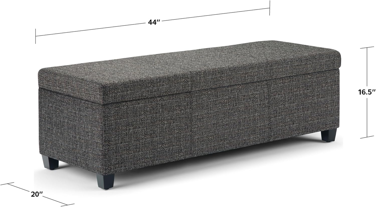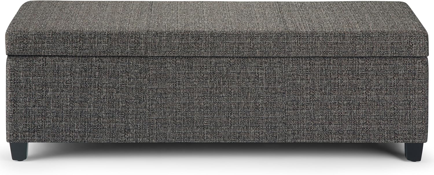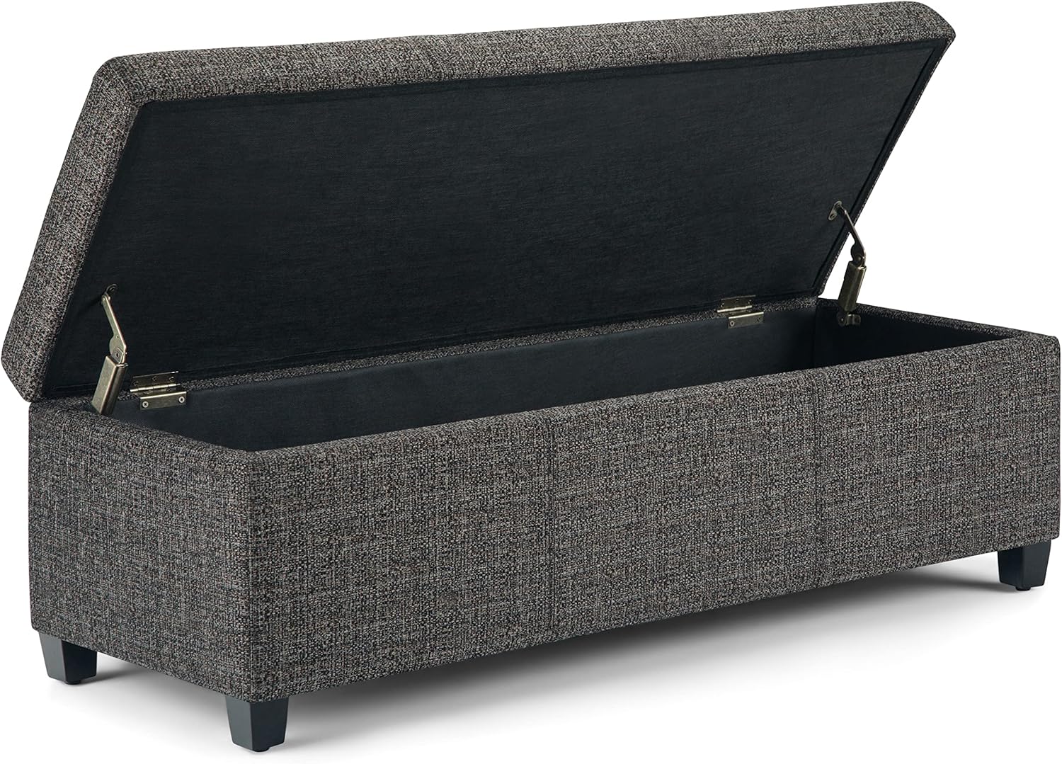 SIMPLIHOME Avalon 48 inch Wide Contemporary Rectangle Storage Ottoman Bench in Dark Grey Tweed Look Fabric, Assembled, For the Living Room, Entryway and Family Room