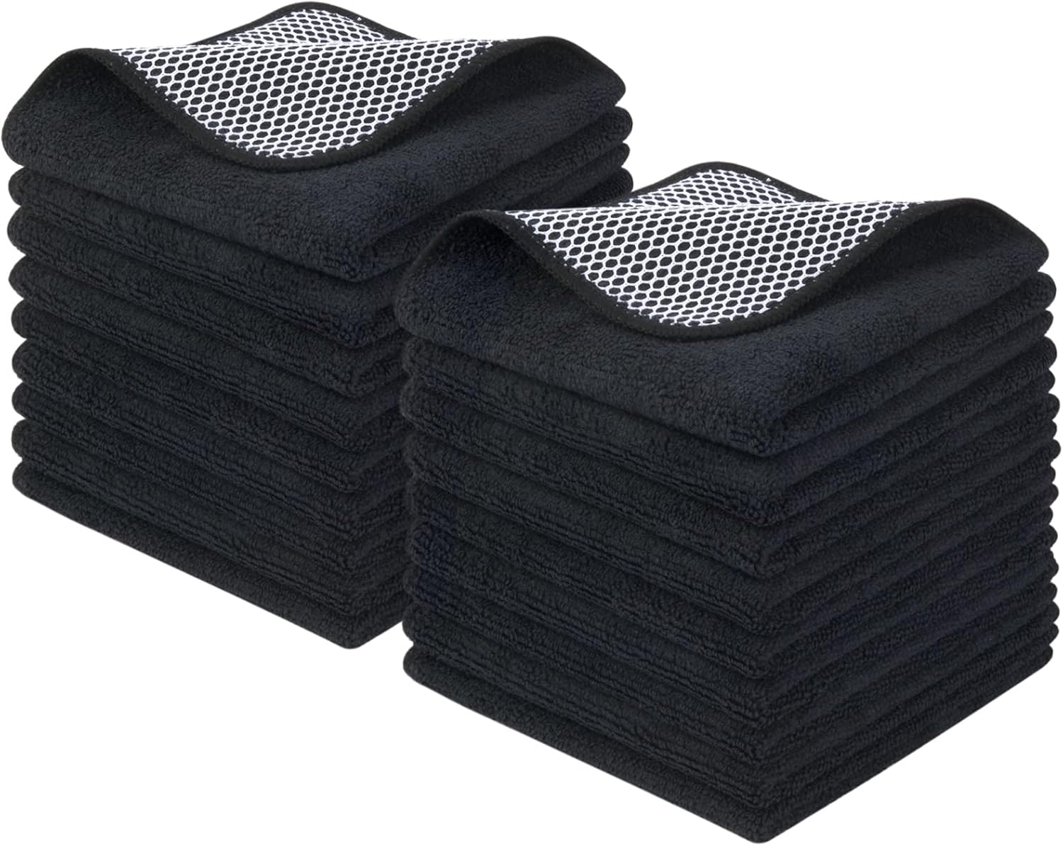 KinHwa Kitchen Washcloths for Dishes Absorbent Microfiber Dish Cloths Quick Dry Dish Rags with Poly Scour Scrub Side Ideal for Kitchen Cleaning (Black, 12inchx12inch 18 Pack)
