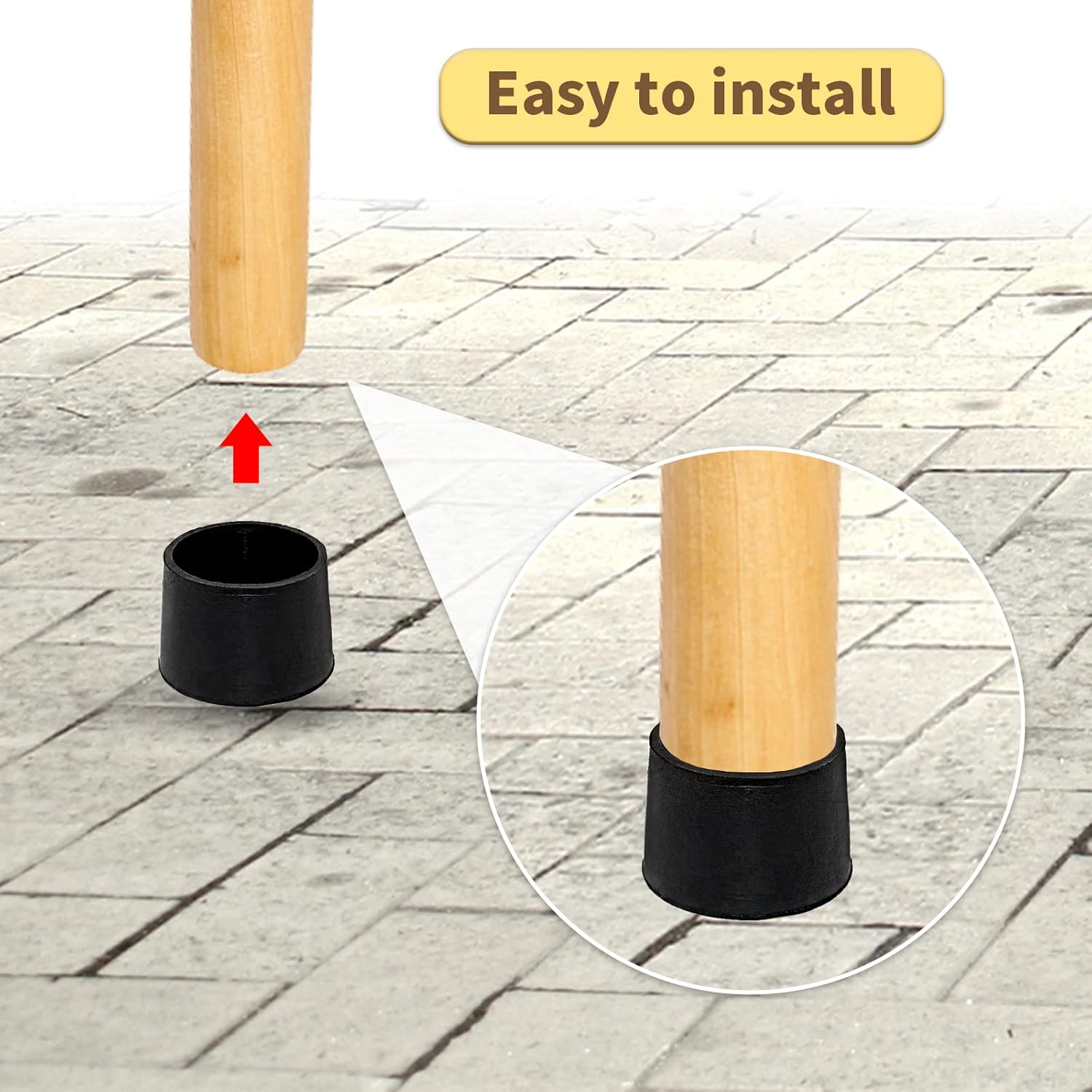 Flyshop Furniture Table Covers Non-Slip Heavy Duty Rubber Leg Tips Chair Leg Caps Floor Protectors Round Black 4PCS Size 38mm, 1-1/2"