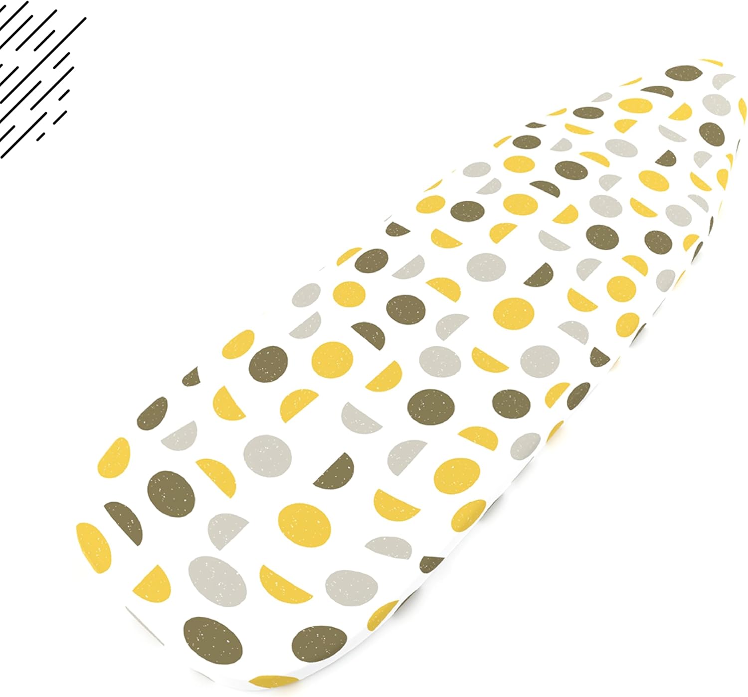 Encasa XO Ironing Board Cover and Pad 54"x15" - Thick 3mm Felt Padding, Drawstring Tightening & Lock, Easy Fit, Scorch & Stain Resistant, Fits Standard Large Ironing Board - Yellow Moon
