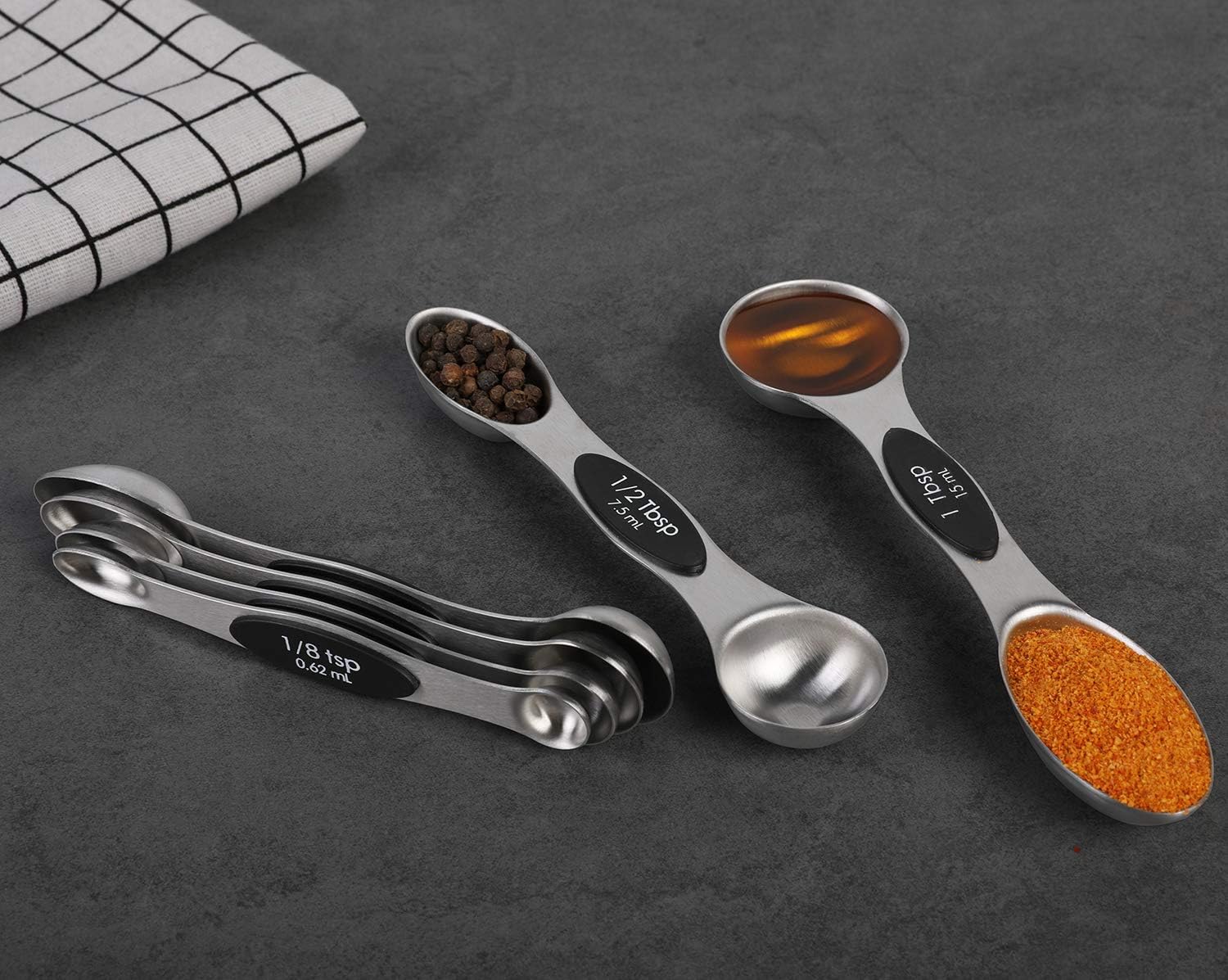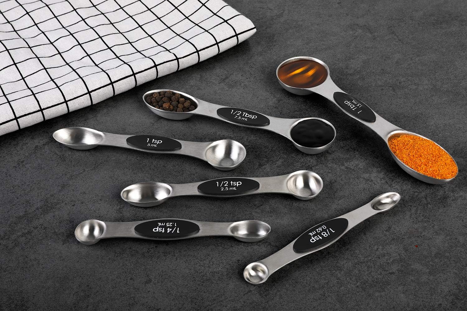 Magnetic Measuring Spoons Set of 6 Stainless Steel Dual Sided Stackable Teaspoon for Measuring Dry and Liquid Ingredients