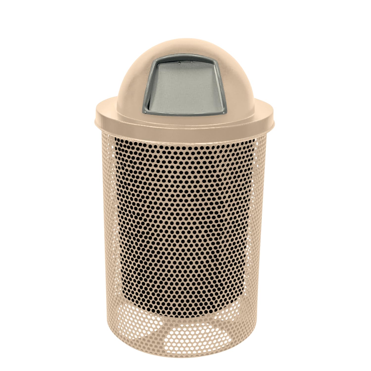COATEDOUTDOORFURNITURE RDT-P-TAN Heavy Duty Round Trash Receptacle with Dome Top, Liner Included, 32 Gallon, Tan, Made in America