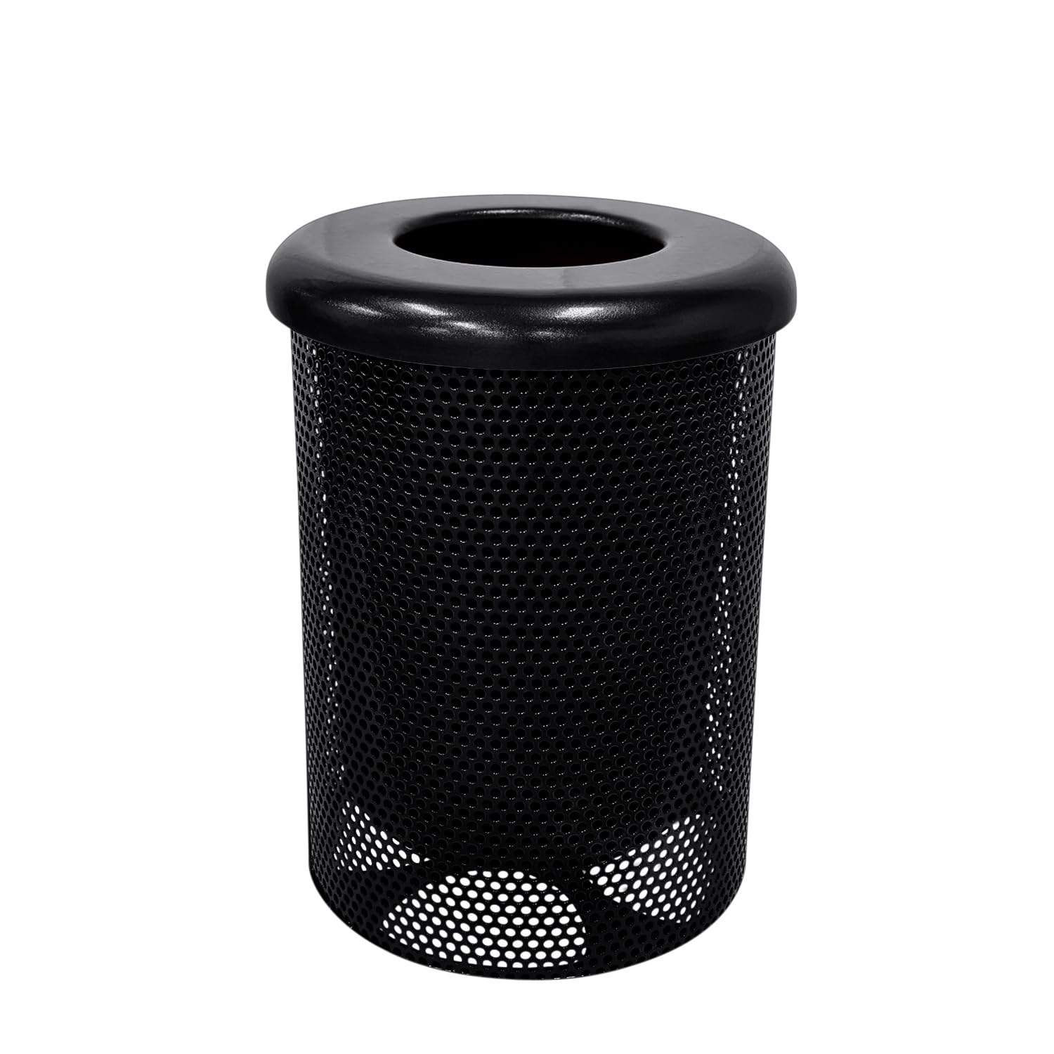COATEDOUTDOORFURNITURE RFT-P-BLK Heavy Duty Round Trash Receptacle with Flat Top, Liner Included, 32 Gallon, Black, Made in America