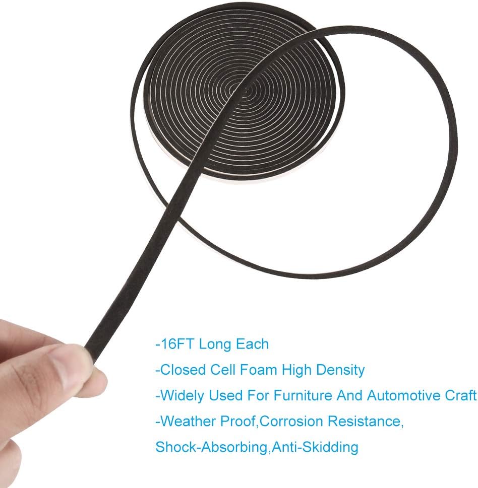 2 Rolls Weather Stripping,1/4 Inch Wide X 1/8 Inch Thick Foam Seal Tape High Density Foam Strip Self Adhesive,Closed Cell Foam Tape Seal Strip,16 Feet Long Each