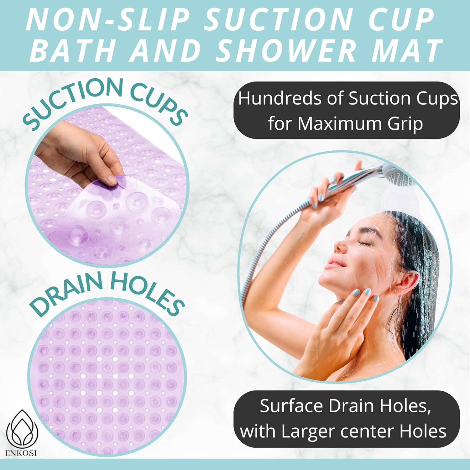 - Great For The Elderly, The Babies & Young Children: Nonslip & generously sized, the Enkosi bath mat ensures the safe bathing & showering of your baby, toddler, as well as your elderly parents or grandparents.