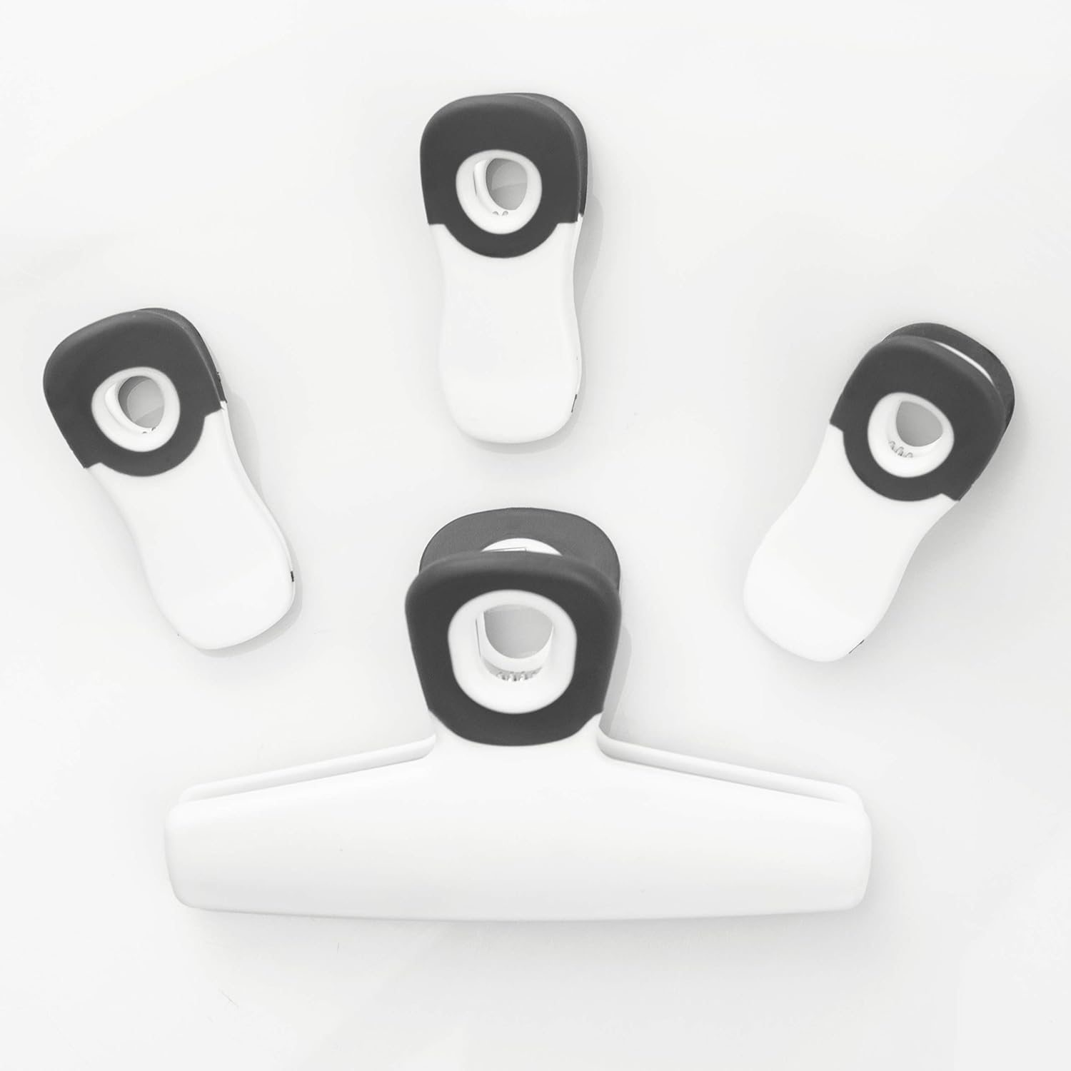 - Set includes 2 large 5" bag clip, the great size clip for extra large bags of chips and food and 6 clips with magnets on the back, great for sealing smaller bags of chips and food.