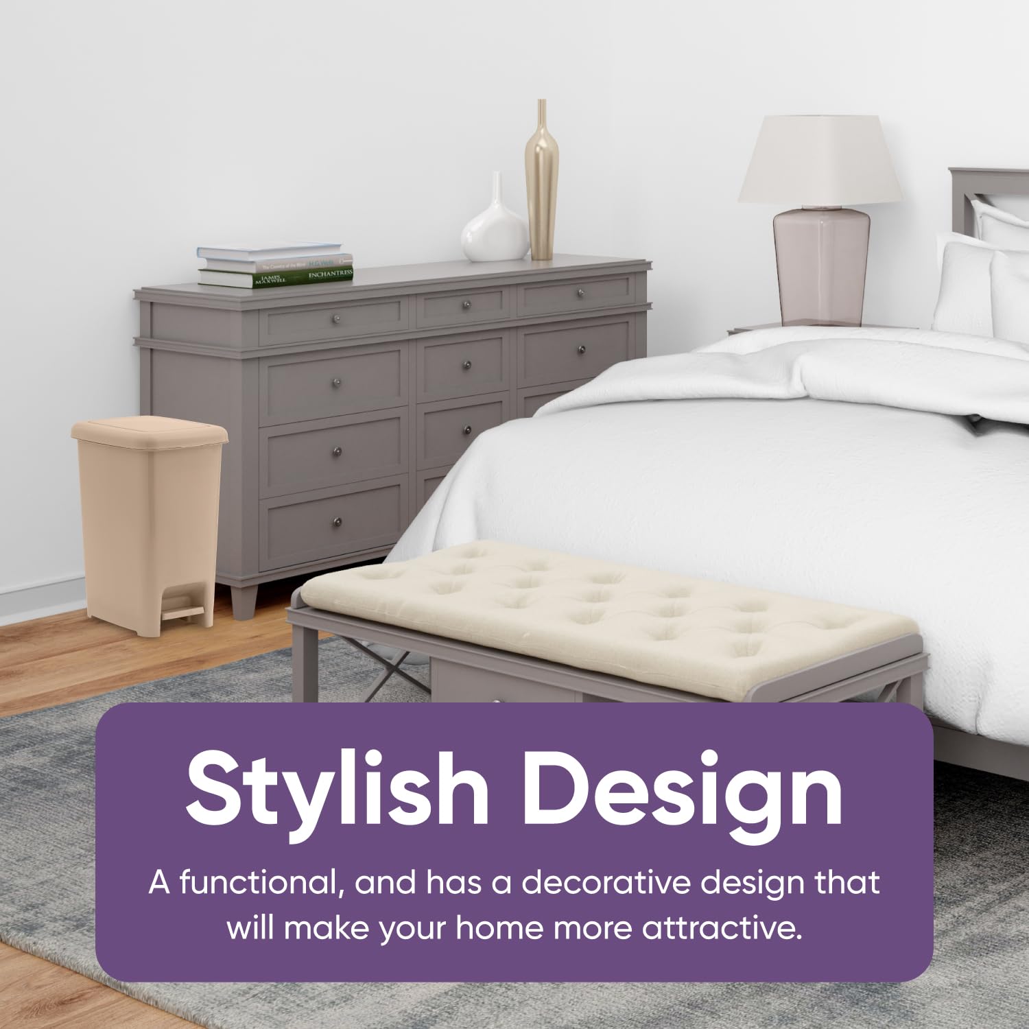 Superio Slim Step On Trash Can, Beige Waste Bin with Foot Pedal Lid 26 Liter, Kitchen, Under Desk, Office, Bedroom, Bathroom (1, 4 Gallon)