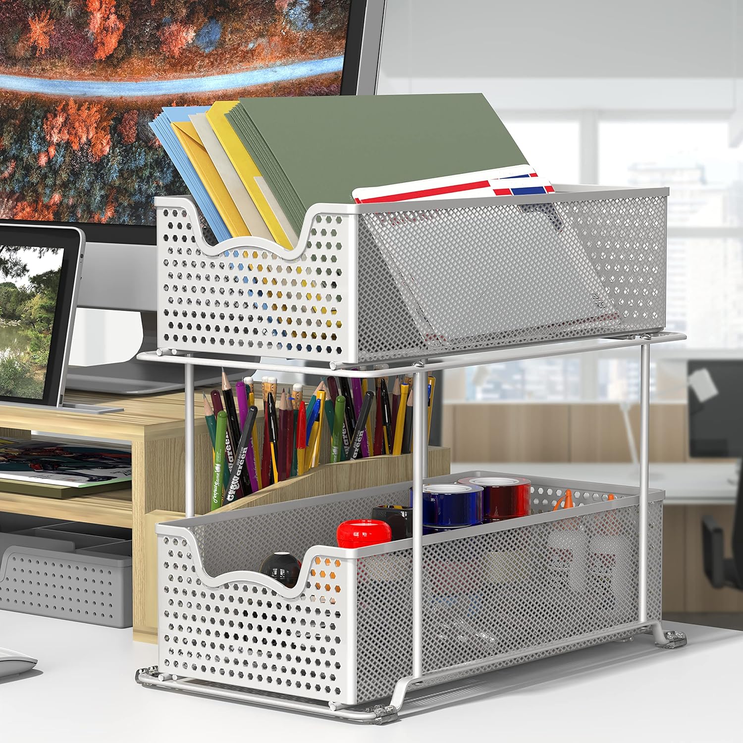 SIMPLE HOUSEWARE 2 Tier Sliding Cabinet Basket Organizer Drawer, White
