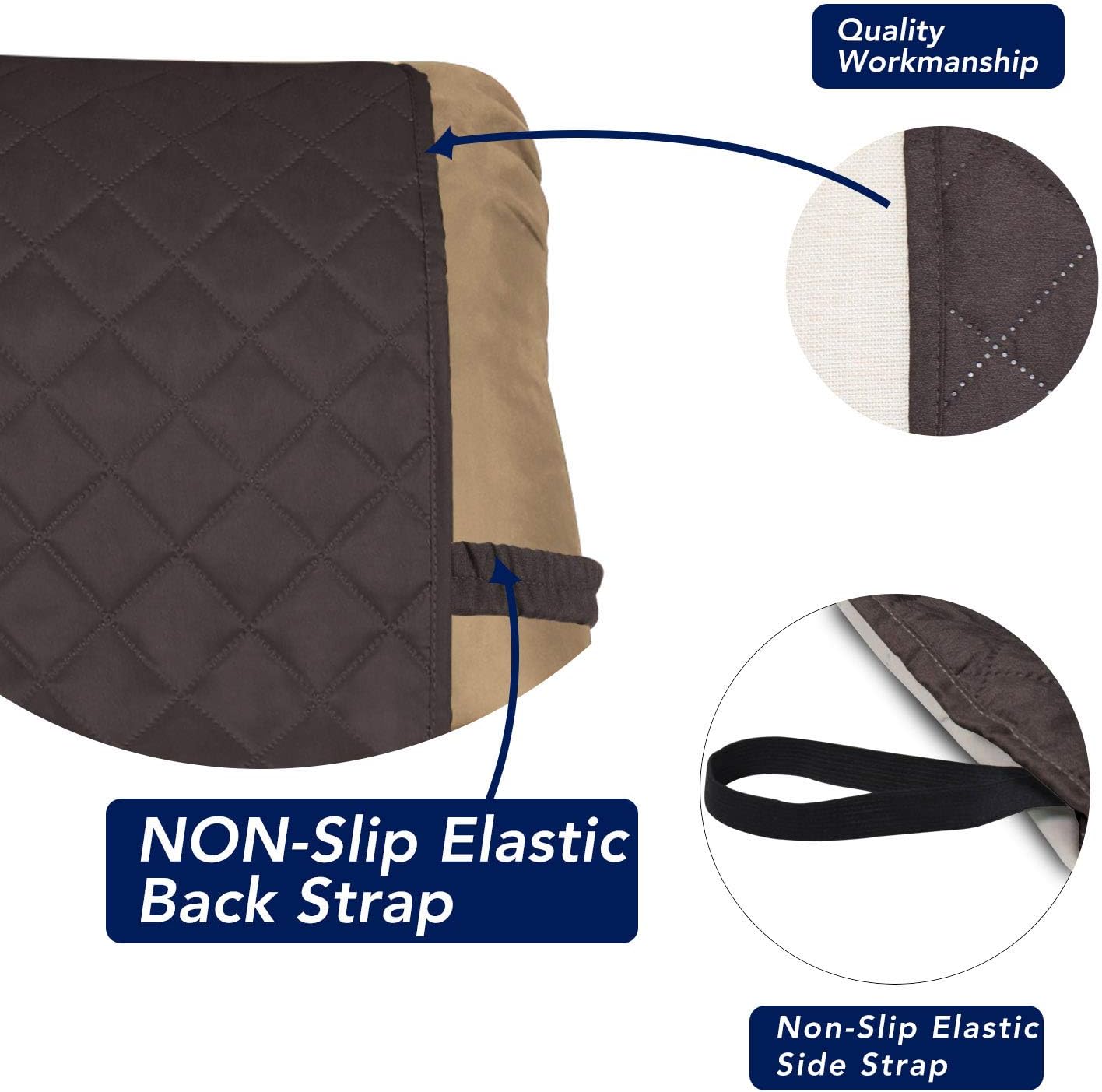PureFit Reversible Quilted Sofa Cover, Water Resistant Slipcover Furniture Protector, Washable Couch Cover with Non Slip and Elastic Straps for Kids, Dogs, Pets (Small Recliner, Chocolate/Beige)