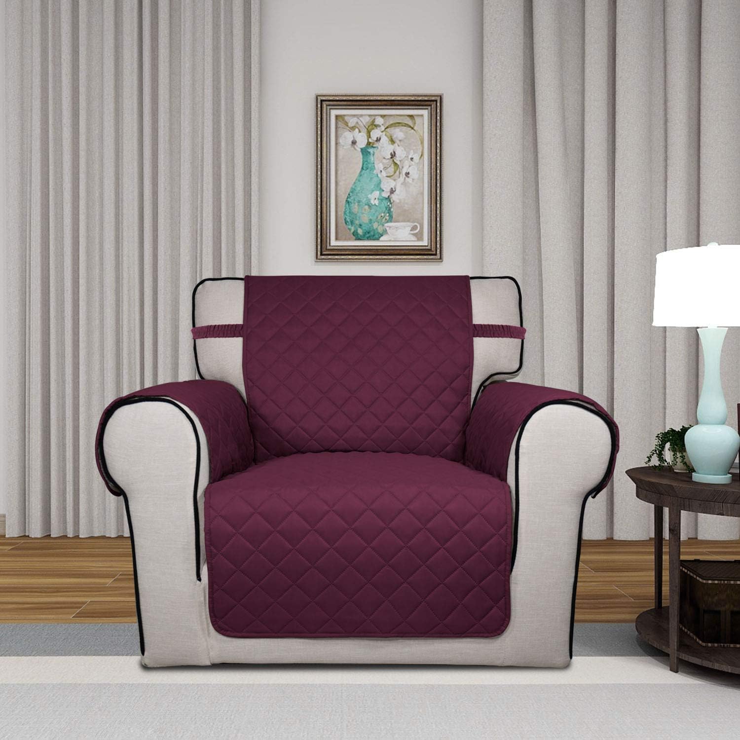 PureFit Reversible Quilted Sofa Cover, Water Resistant Slipcover Furniture Protector, Washable Couch Cover with Non Slip and Elastic Straps for Kids, Dogs, Pets (Chair, Wine/Beige)