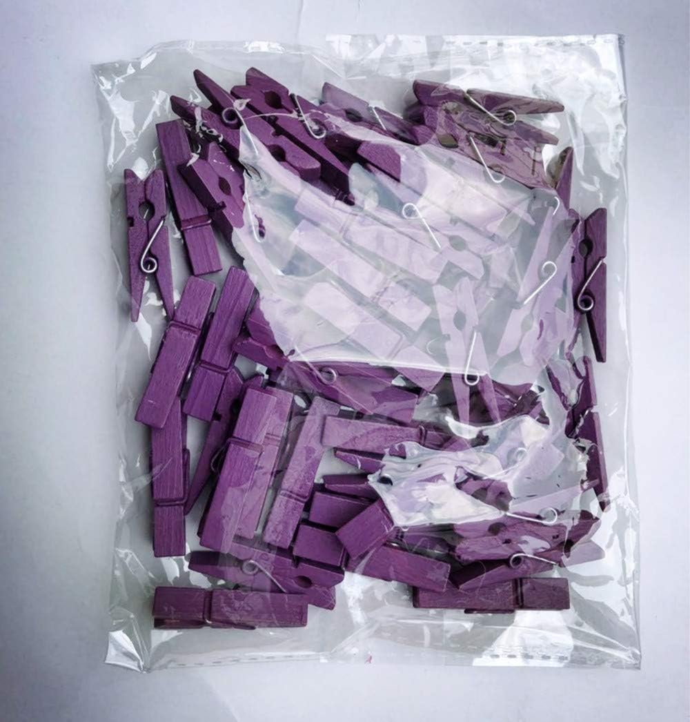 DurReus 50 Piece Small Wood Clips Mini Clothespins with Spring Jute Twine Durable Wall Peg Pin for Craft,Art Project,DIY,Party Decorative Purple