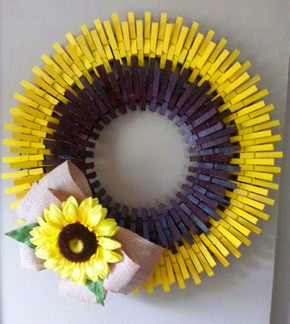 DurReus Sturdy Clothes Pegs Clamps DIY Craft Mini Colored Wood Clothespins Clip Holiday Christmas Cards with Twine Pack 50 Yellow