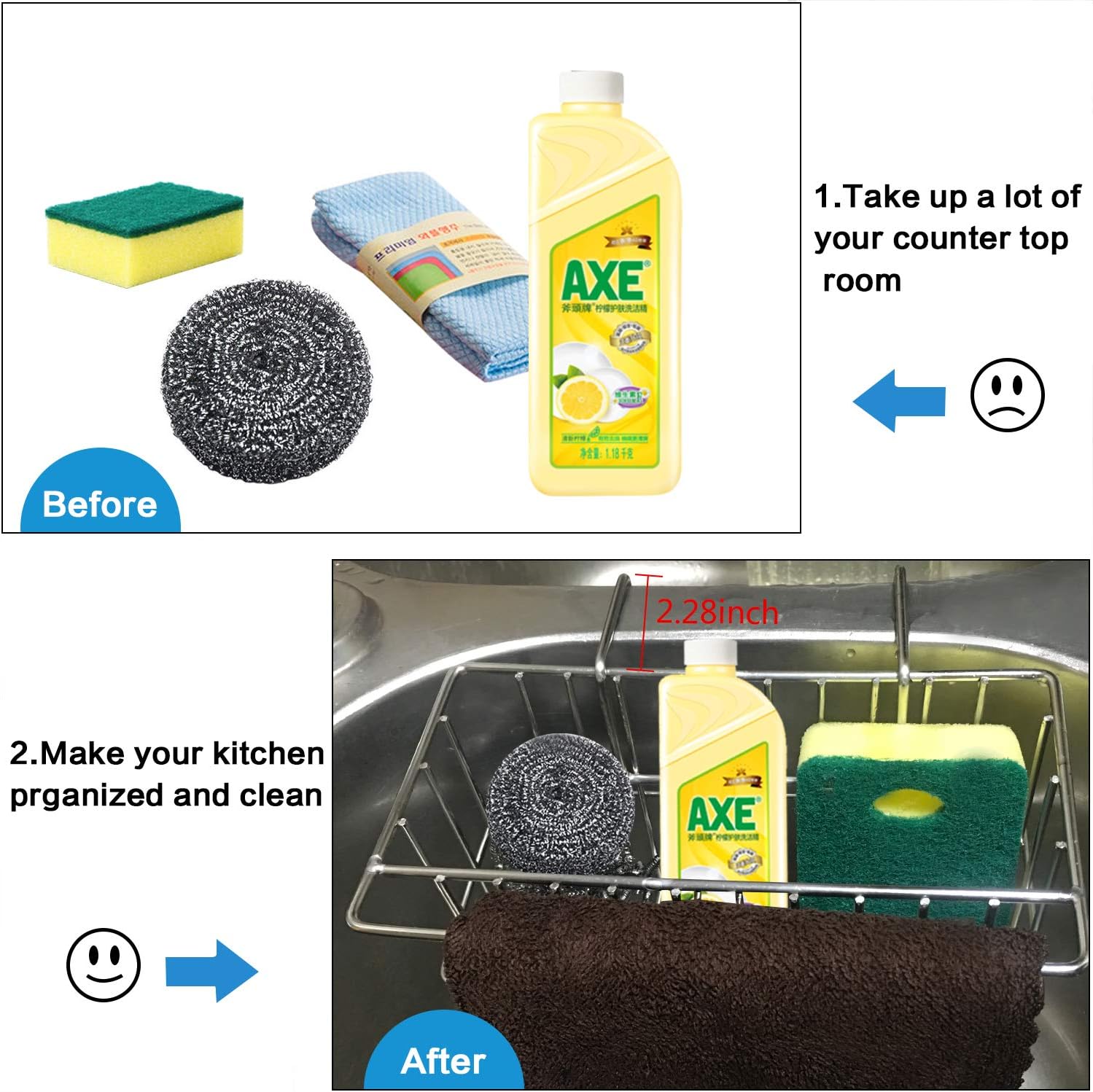 - âś…MORE CONVENIENT TO DISHWASH - Perfect to hold sponge, soap, brush, towel, more convenient for you during washing dishes. Unique outer rack design, it creates a space for your kitchen towel, very functional.